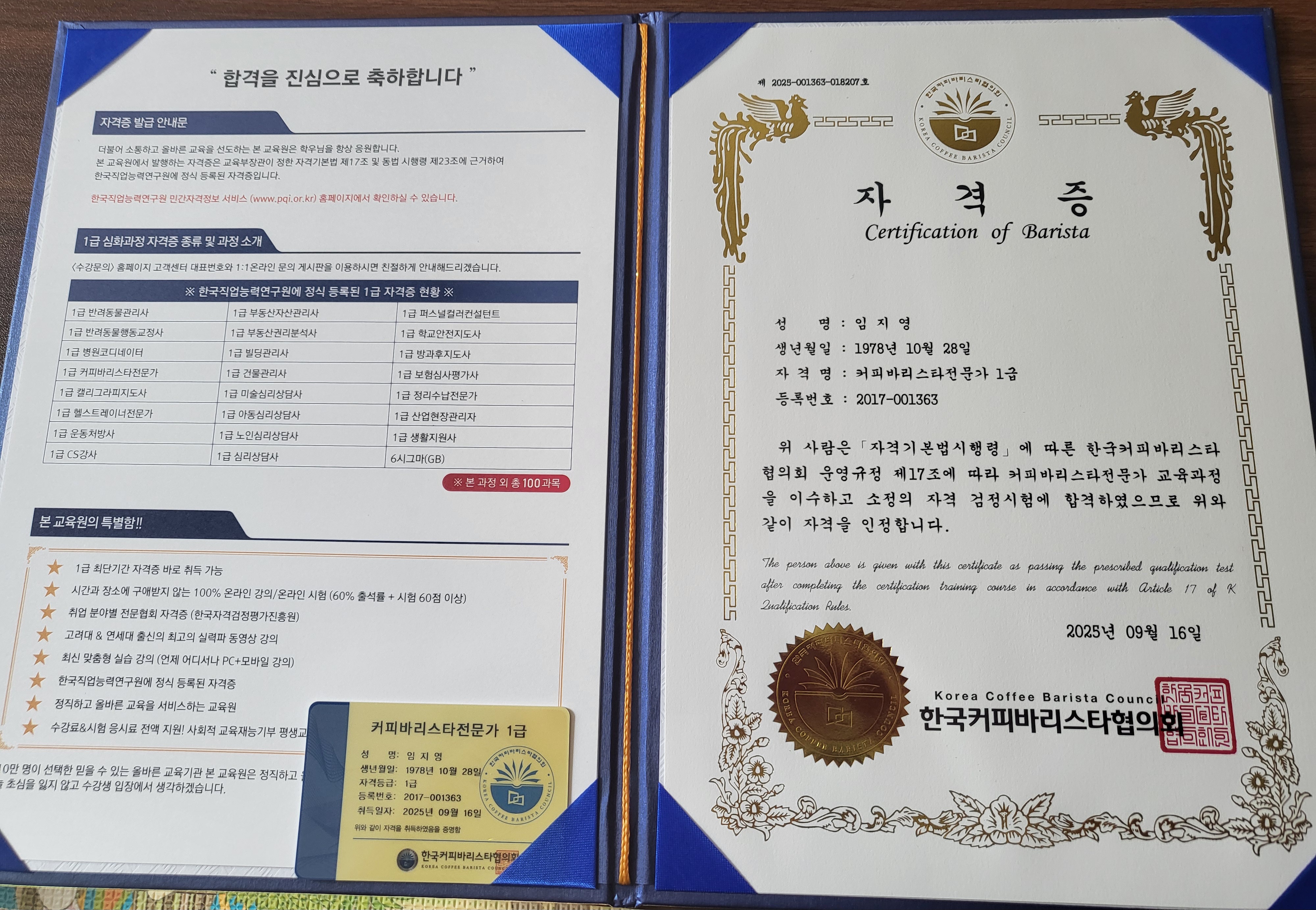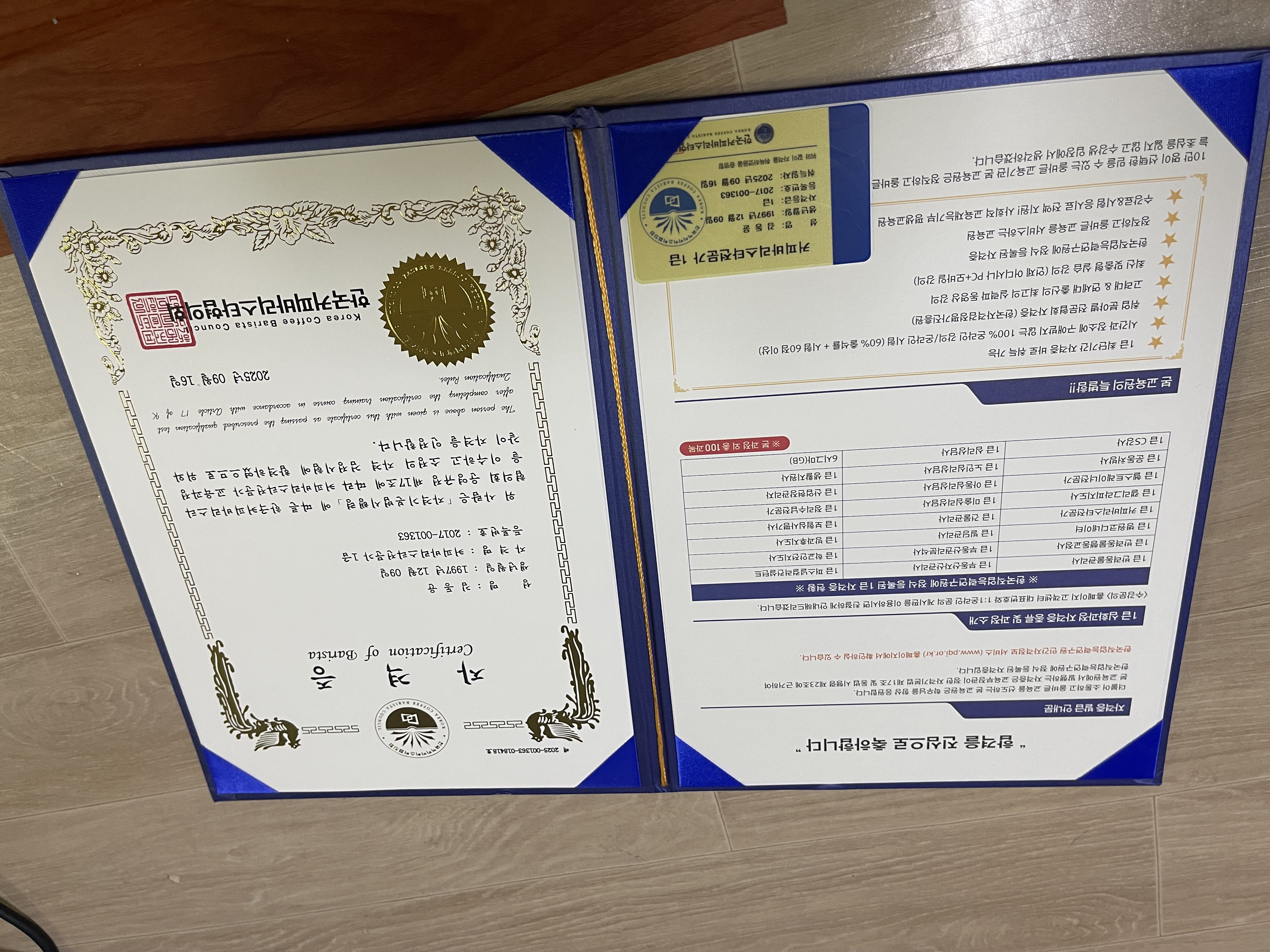 오랜만에 바리스타를 강의를 들으면서 선생님이 모든걸 하나하나 집어주면서 상세히 설명도해주시고 제가 모르는부분에서 많이 배워가요