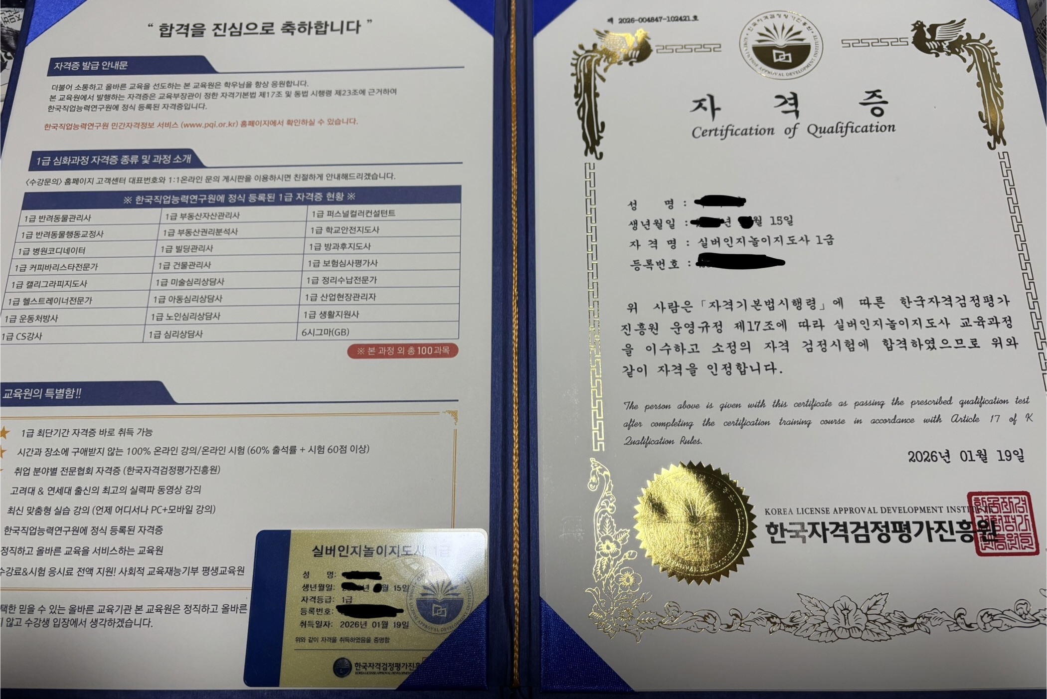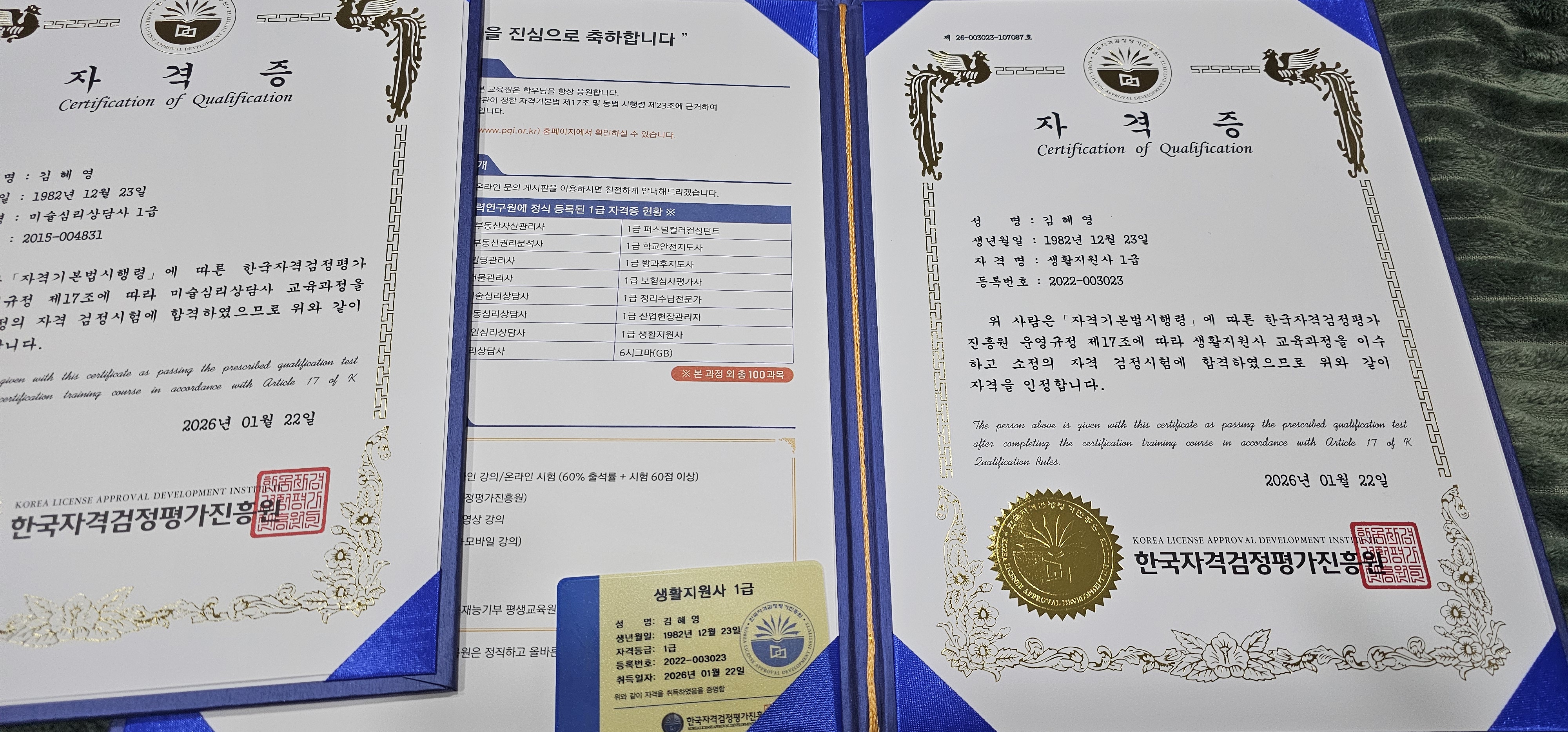 나의 일만 위주로 살았던 거 같은데, 사회에도 도움이 되고, 누군가 에도 도움도 주고, 나 자신 보람도 찾을 수 있는 아주 귀한 자격증을 취득하게 되어 너무 기쁩니다. 잘 활용하겠습니다.