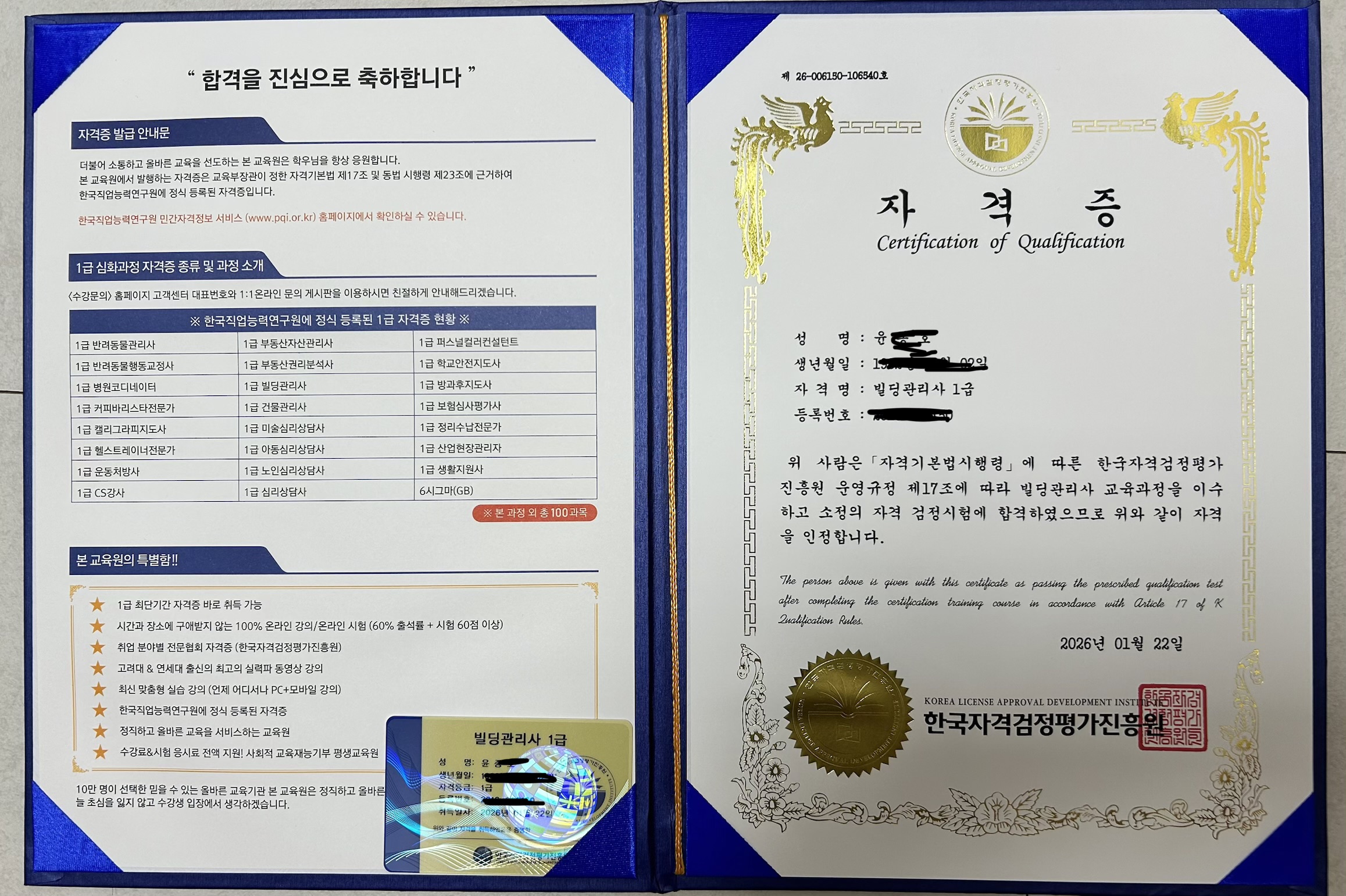 집합건물관리사1급과 연계해서 자격증을 취득하게 되었어요.
