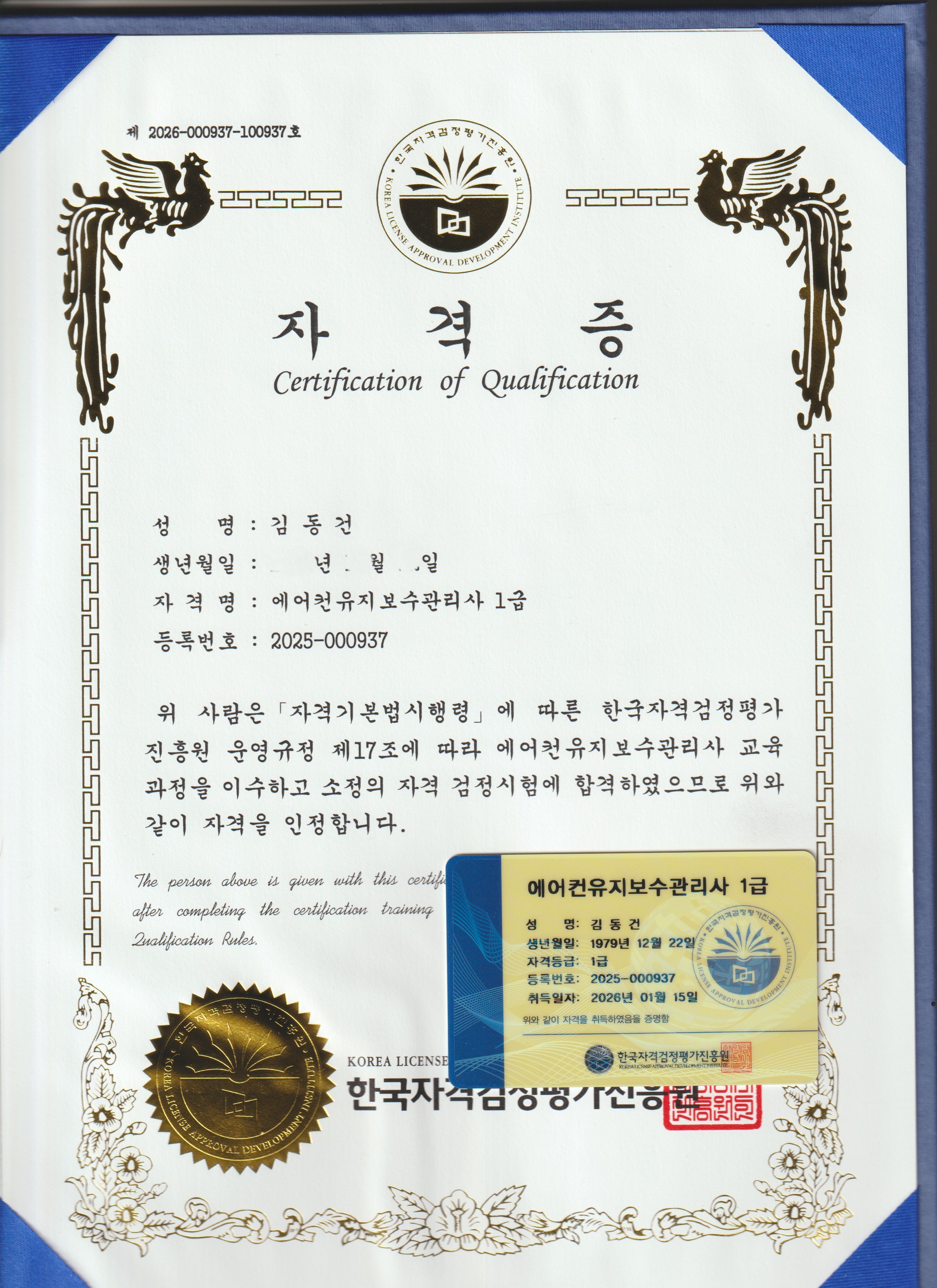 지금 현재 에어컨 세척일을하고 있습니다. 그러던중 자격증의 필요성을 느끼게되었습니다. 세척관리사 자격증을 한국능력 개발진흥원에서 취득했는데 비용을 비싸게 지불해네요 진즉에 여기를 알았으면 저렴하게 취득할수 있었을텐데.. 자격증을 취득했다고해서 바로할수는 없습니다. 현장에서 체계적으로 배워야됩니다.