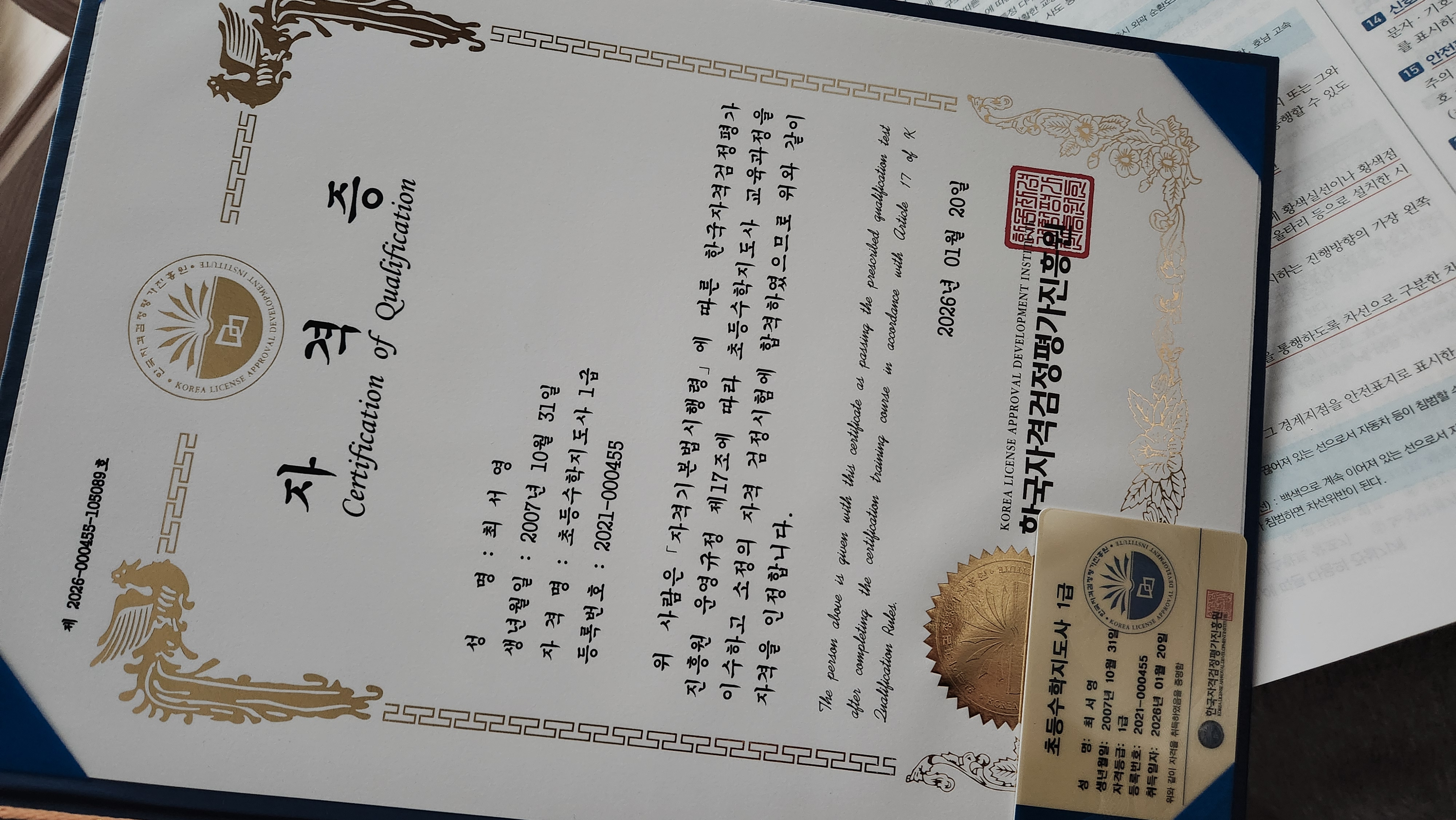 20살에 무얼 해야 할까 고민하다가 찾아낸 자격증 따기였는데 운전면허보다 더 일찍 공부했던 건데 선생님이 잘 가르쳐 주셔서 그런지 자격증을 내 손안에 넣을 수 있다는 게 너무 좋았어요!ᰔᰔ