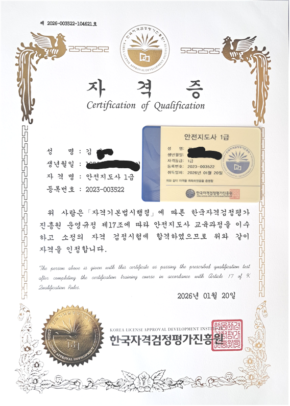 현 시대에 안전 안전을 제일 중요시 합니다, 우연히 한국자격증협회 홈에 들러 자료를 보았습니다, 무료온라인 수강이 가능하다는 정보가 있기에 회원가입하고 유능하신 교수님의 강의 열심히 듣고. 좋은성적으로 자격증을 받게 되었네요 감사합니다.