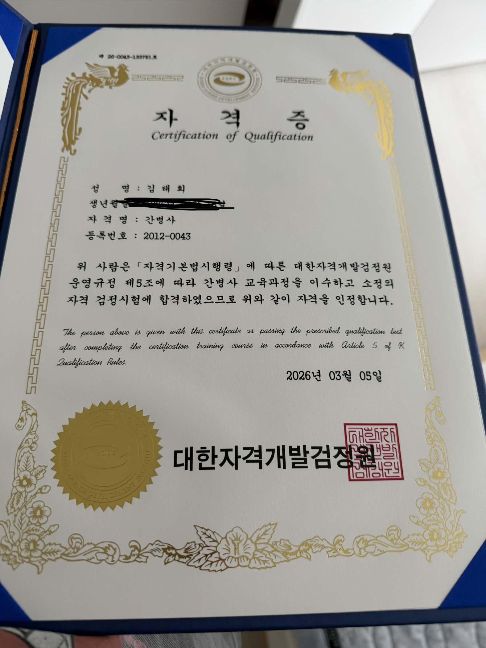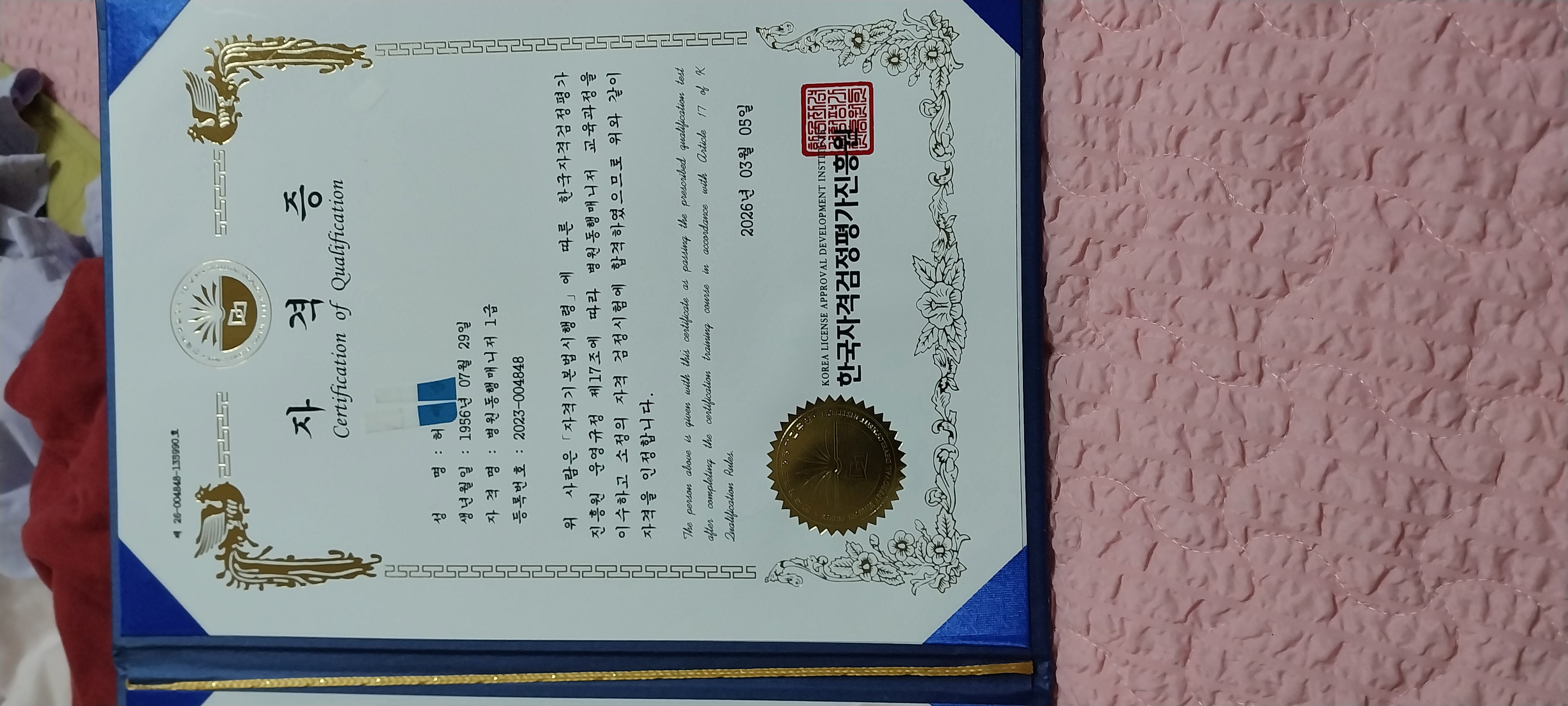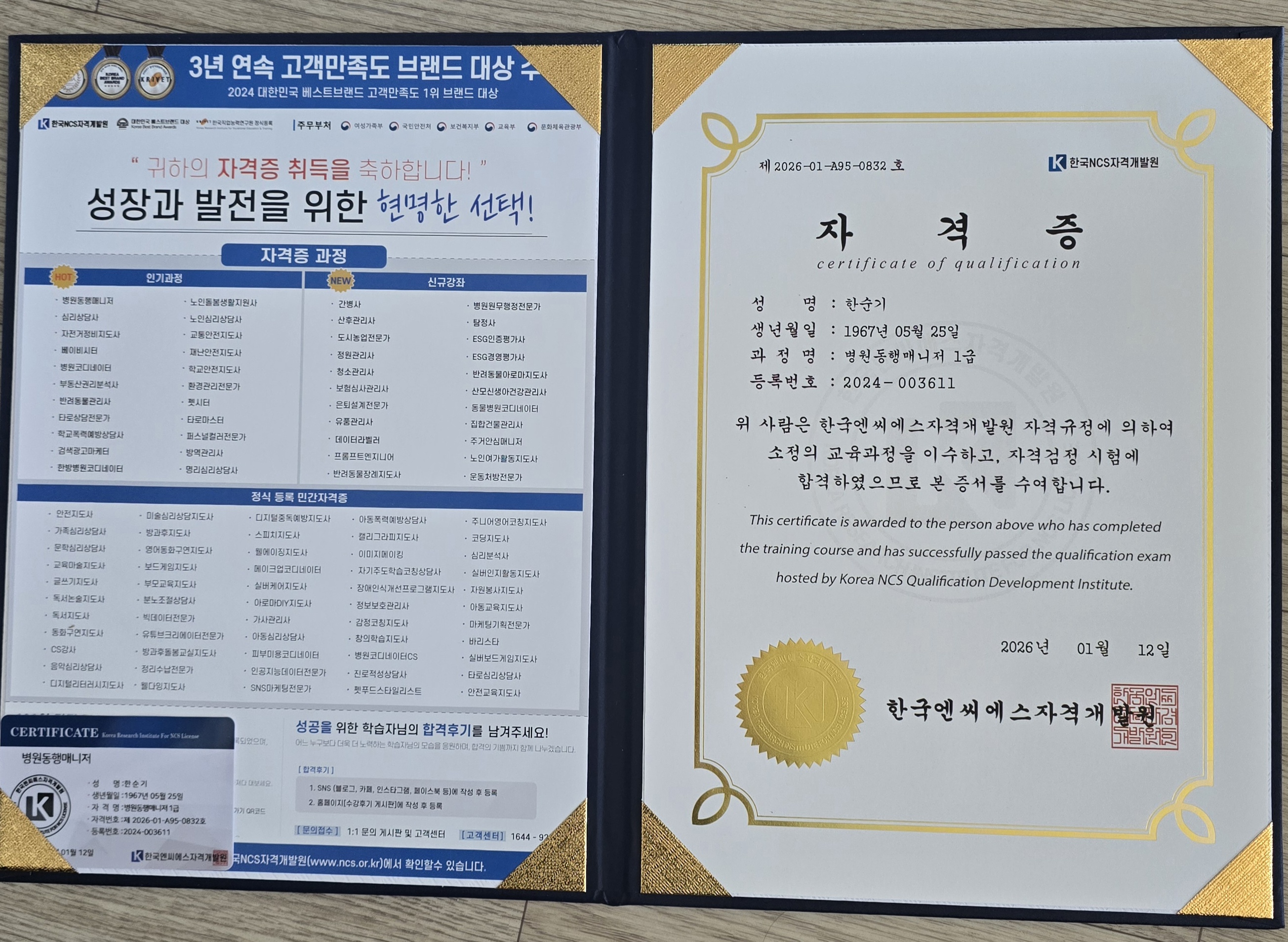 늦은 나이에 병원에 입원해있는 언니를 케어하다보니 병원다니는것이 큰 일이 되었네요. 모두들 시간이 부족해 동당거리는 모습을 보며 지금이라도 자격증을 준비하면 필요한 사람들에게 조금은 도움이 될거 같아서 시작했는데 최보민교수님께서 강의를 잘해주셔서 어렵지 않게 삽격할 수 있었습니다. 여러분들도 도전해보시면 요긴하게 쓰임이 있을거에요.감사합니다.
