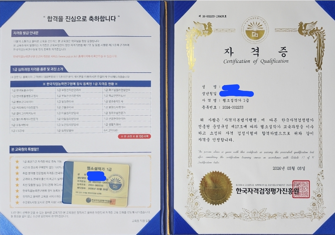 노후를어떡해보낼까 ㆍ늘생각중이었는데 이렇게좋은프로그램을만나게되어서 하루하루가 행복하네요ㆍ자격증없이일자리알아보는것과는 자신감도생기고 조금은어깨가 으쓱해지는듯하네요ㆍ더많은자격증을확보해서 멋진도후를즐길까합니다~~
