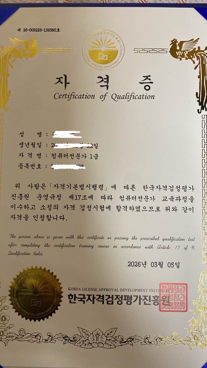 하루만에 강의 다 듣고 시험 봤더니 100점으로 합격 했습니다 교수님 덕분에 이렇게 쉽게 취득한 것같습니다 ㅎㅎ