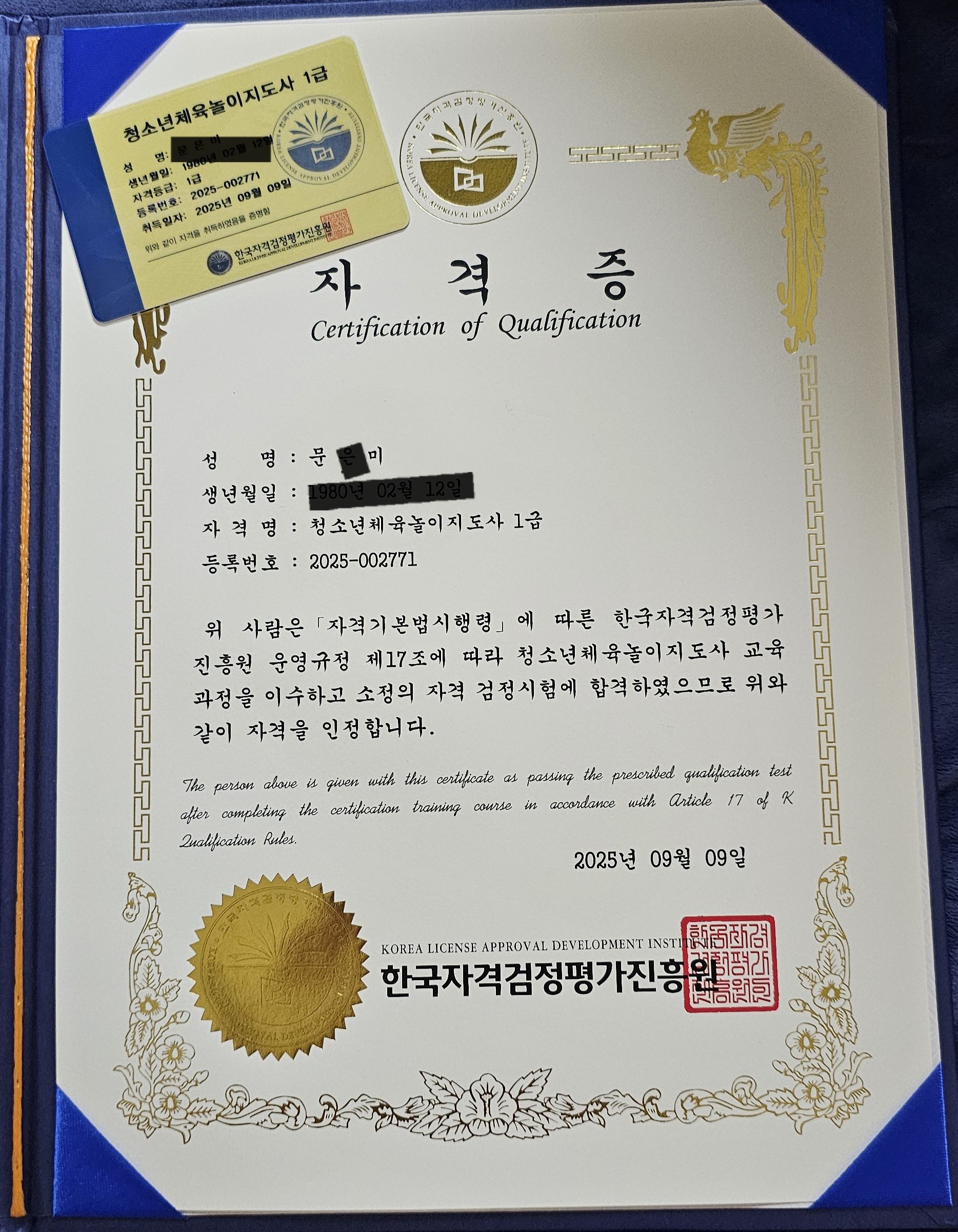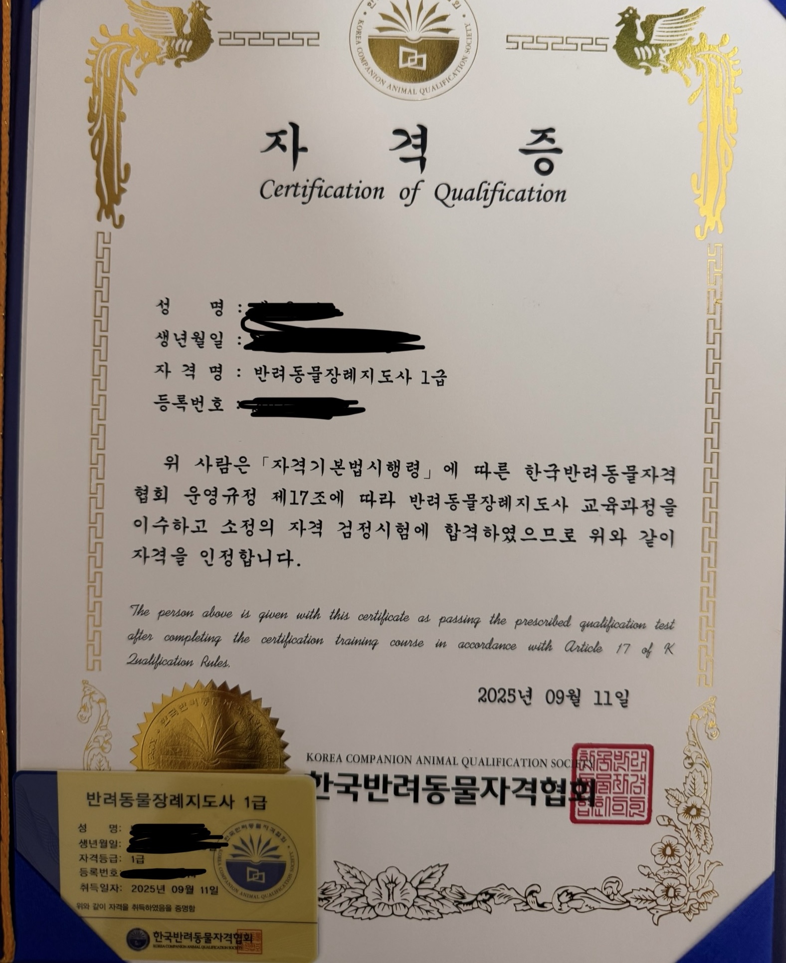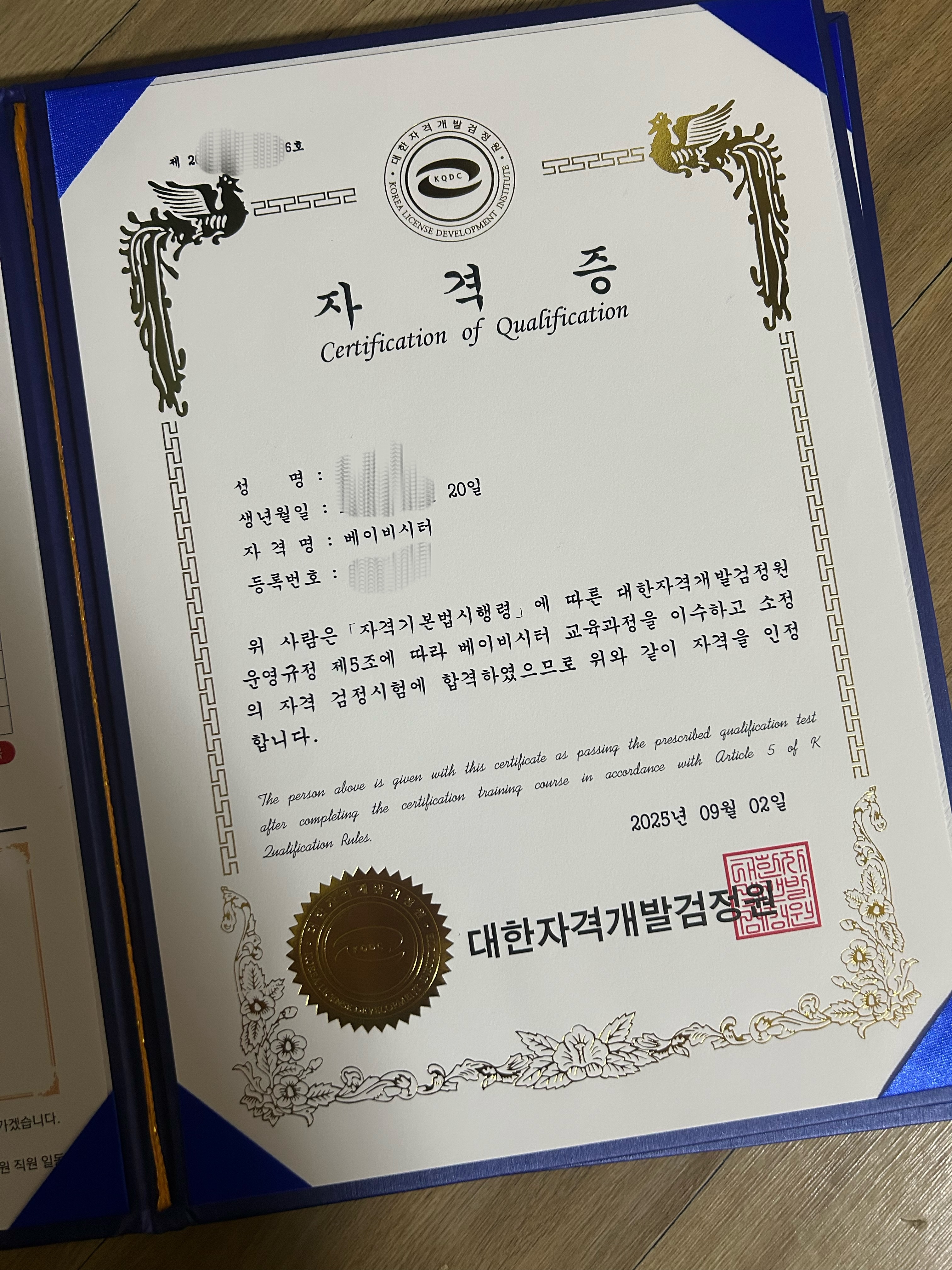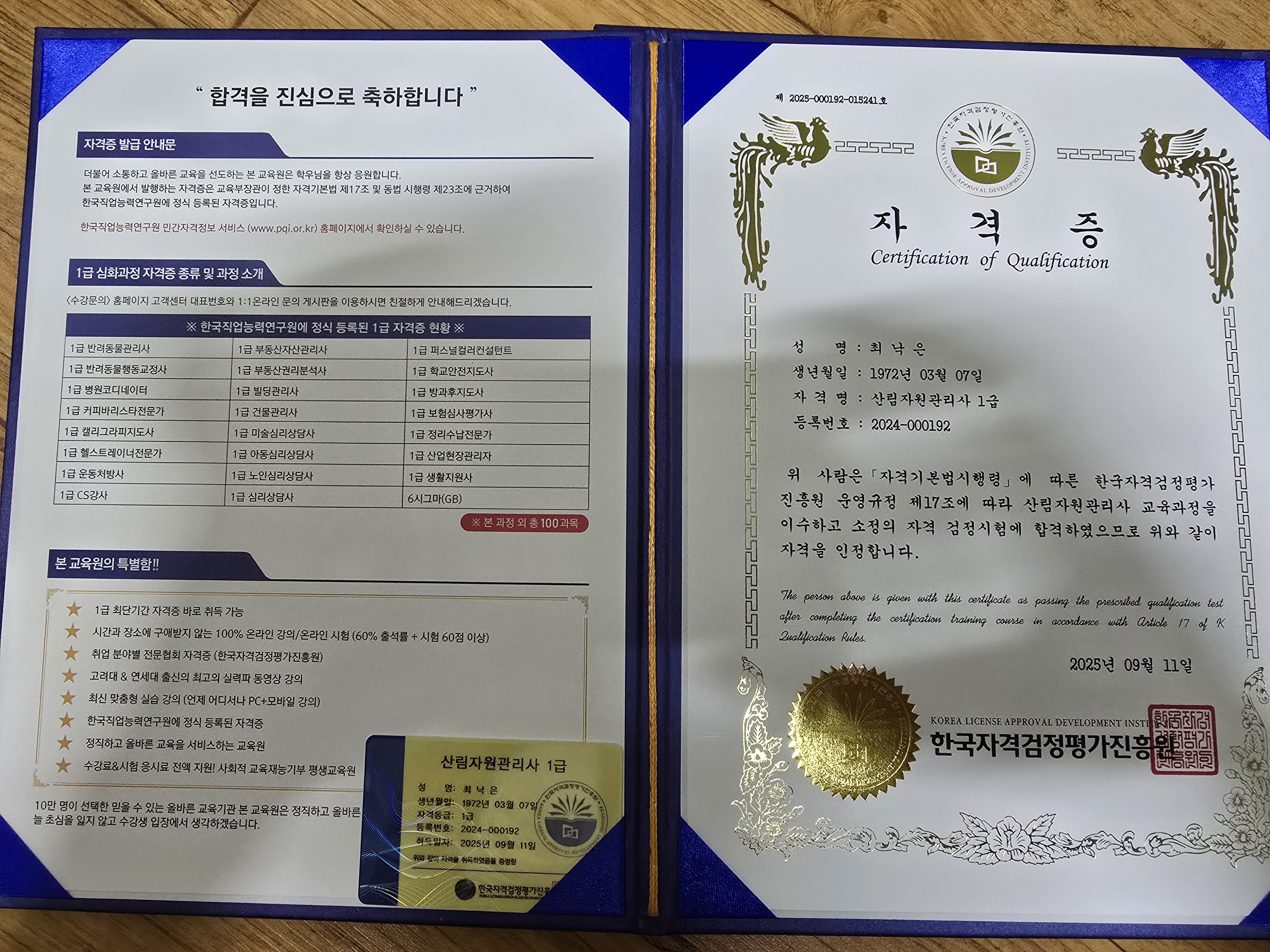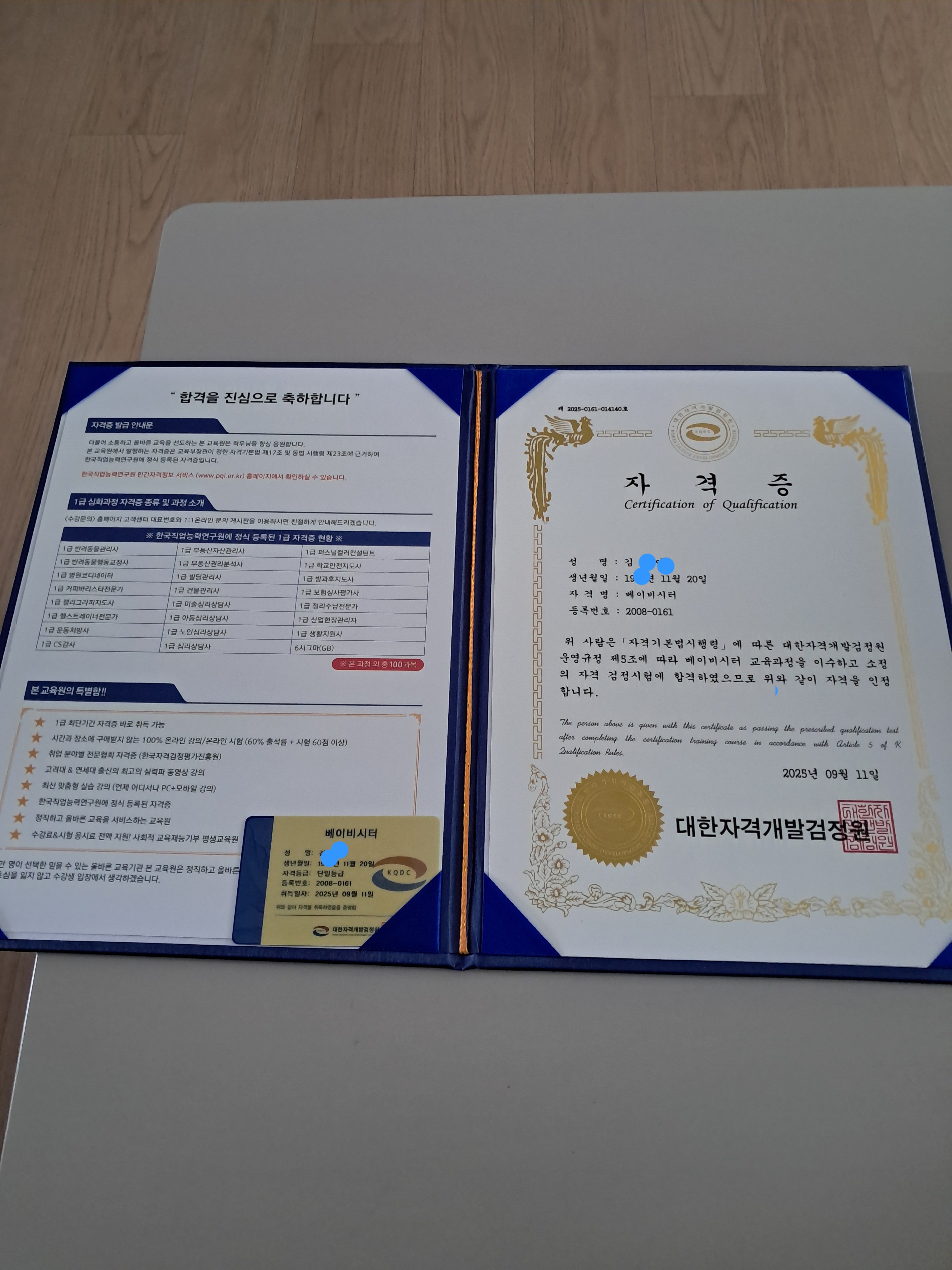 수강료가 무료라는 거에 혹해서 학교다니는 동안 틈틈이 시간 활용해서 들었어요! 받고나니 생각보다 고급스럽고 좋네요!! 감사합니다! 다른 자격증도 열심히 공부해볼게요!