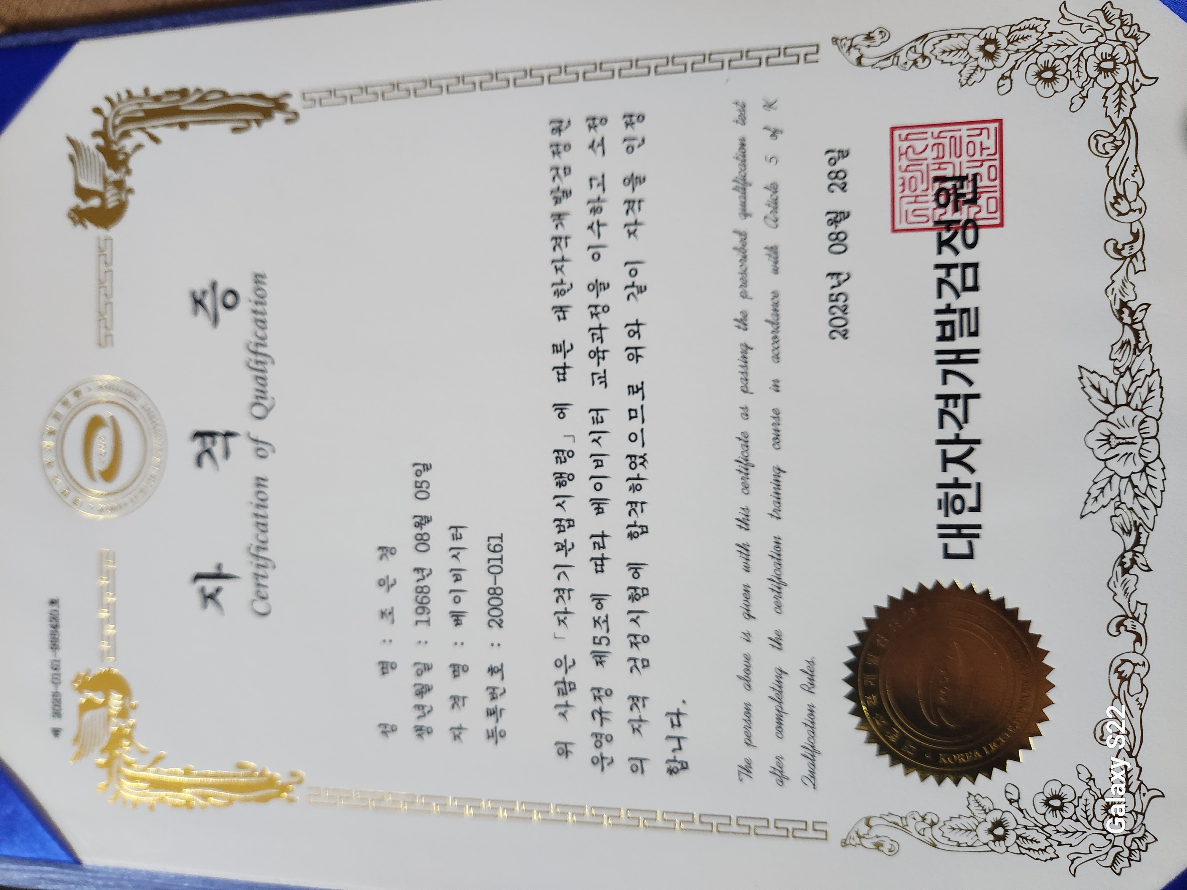 대학교를 늦게라도 가야하나 많은 생각을 하였습니다. 하지만 30대에 대학교를 다니려면 시간도 돈도 많은 제 노력이 필요했습니다.야간대학교도 생겼고 요즘은 30대에 대학간다는건 늦지않았다고,말씀 하신들 저한테는 걸리는게 너무 많더라구요… 한국자격증협회를 접해 제가 조금더 알고싶던 부분의 자격증을 이렇게 딸수있다는걸 알게되어 하나씩 열심히 공부하여 이렇게자격증을 딸수있었어요. 더욱 열심히하여 제가 따고싶던 자격증들을 점차 따려고합니다 너무감사합니다!!