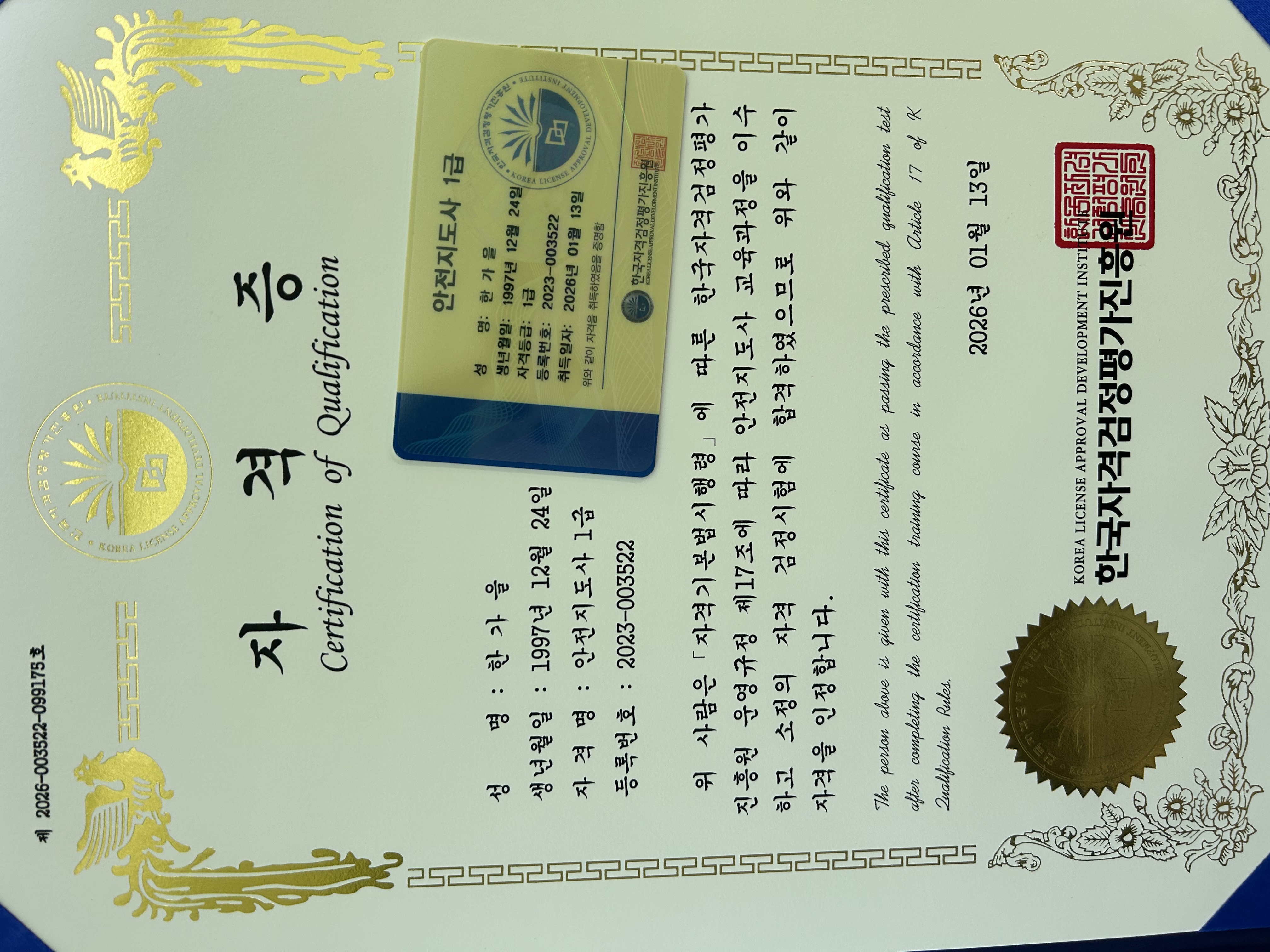 세가지 과정 합격햐서 자격증이 왔어요^^
