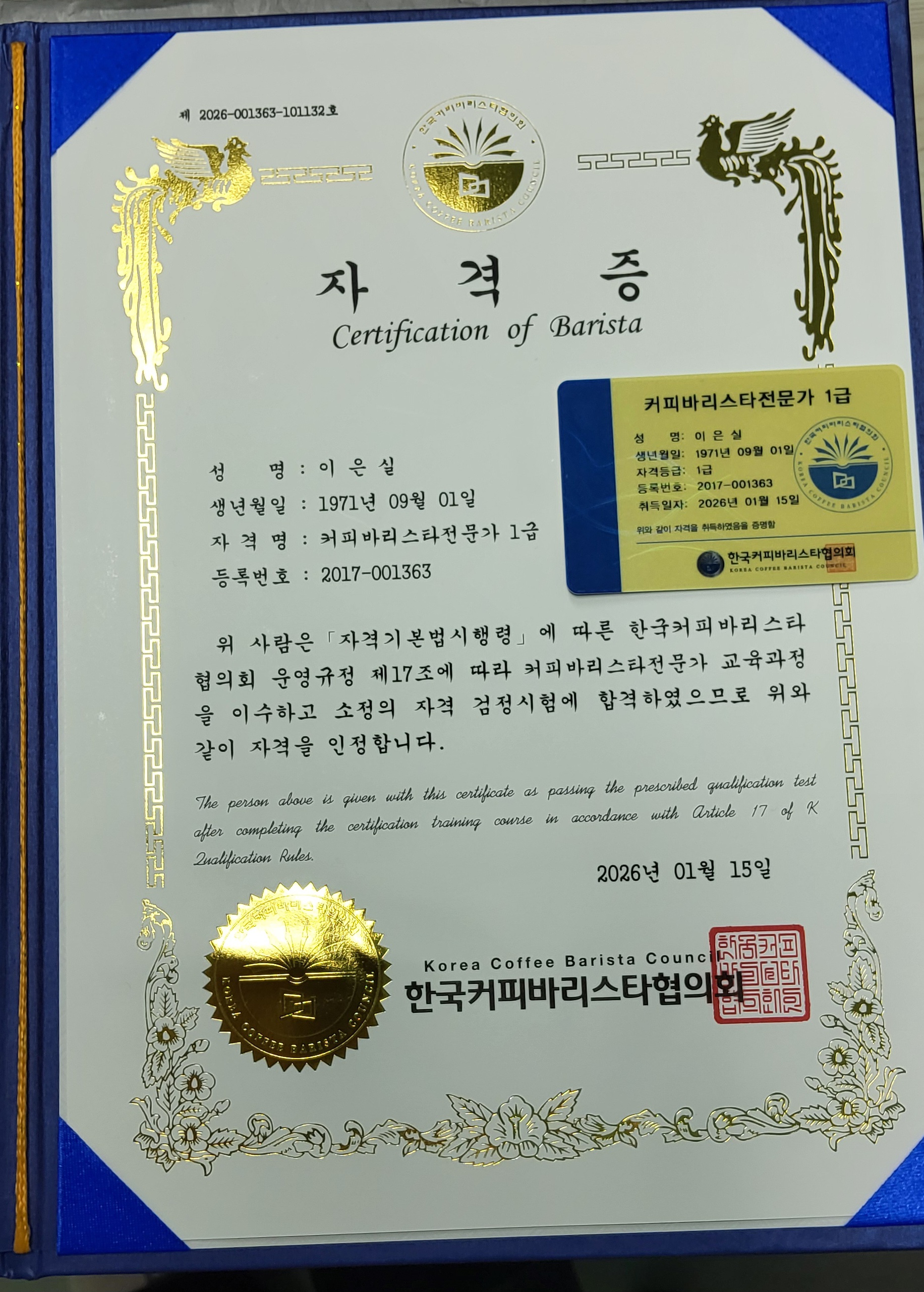 커피바리스타전문가 1급