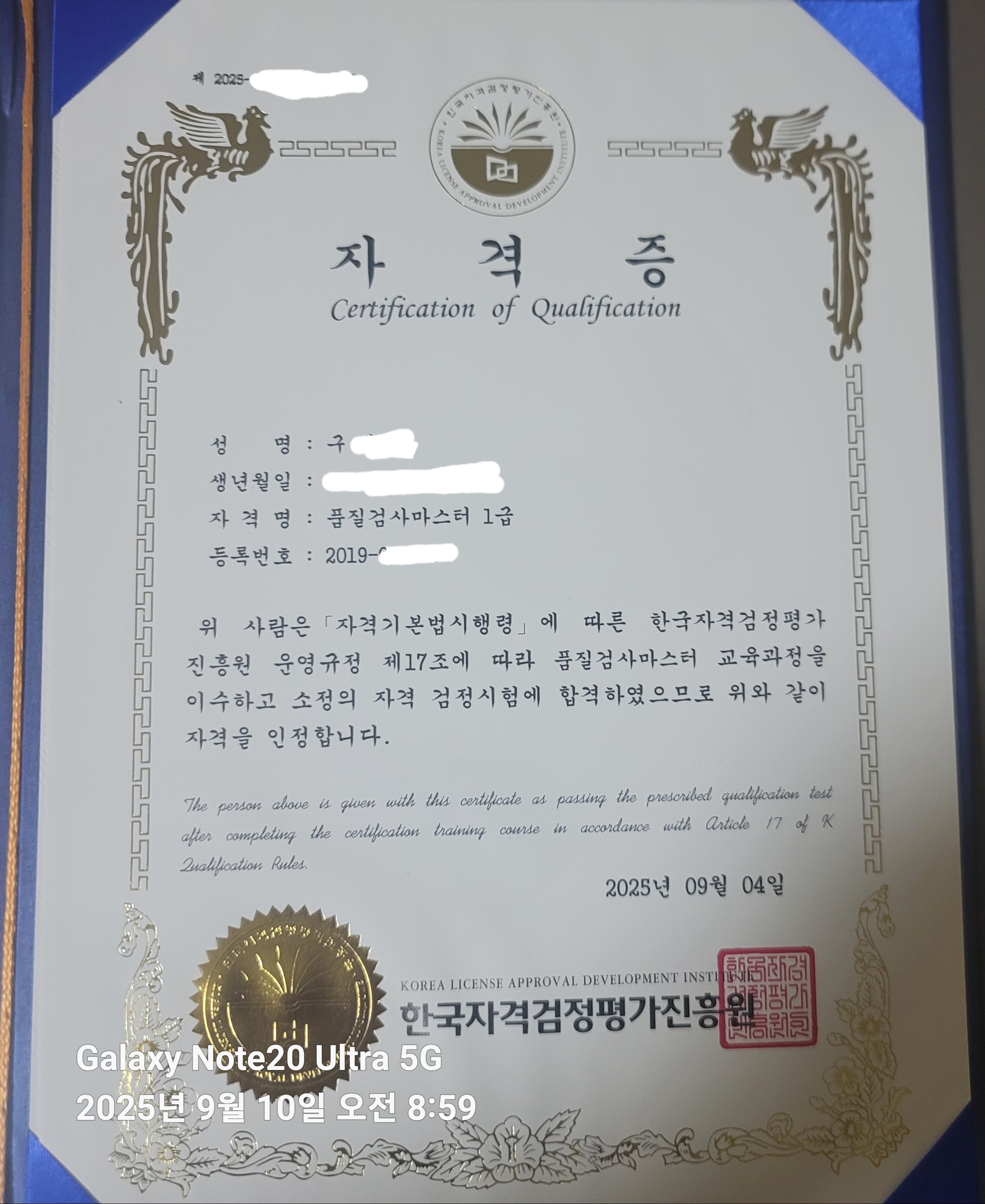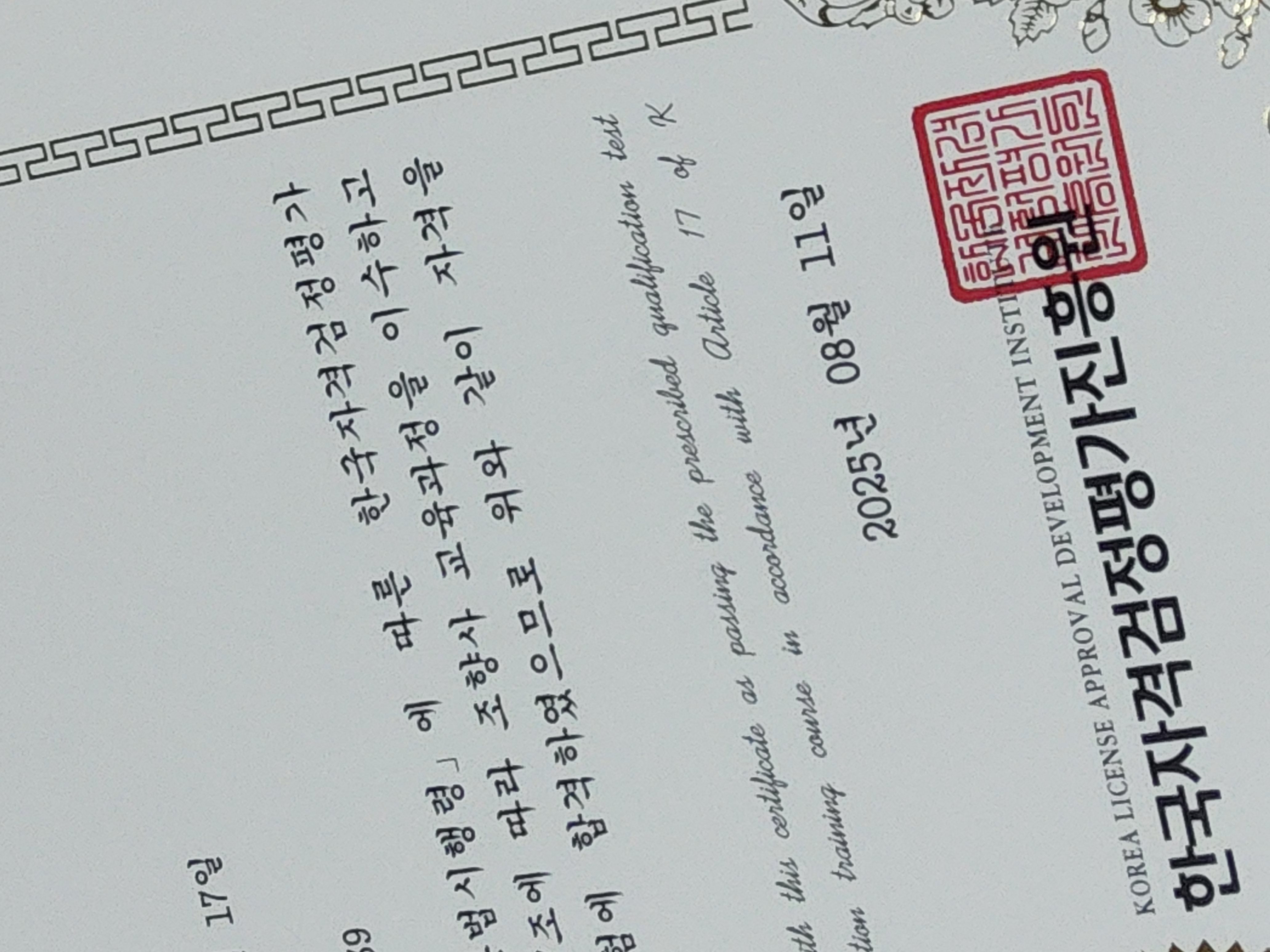 너무 최득하고 싶었던 자격증인데 이렇게 좋은기회로 자격증을 갖게되어 너무 좋구 감사해요~~