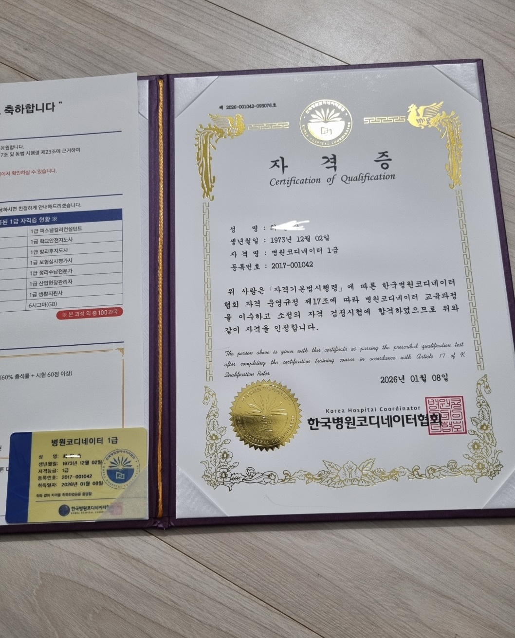 우연히 광고를 통해서 병원코디네이터를 알게되었습니다. 저는 간호조무사 자격증을 획득한 바가 있어서 나이가 많은지라 병원에 취직하는데 도움이 될까해서 도전을 하게되어 자격증에 합격하였습니다. 댁에서 편한시간에 강의듣고 댁에서 시험보고 자유로이 공부하기 좋습니다. 학우님들도 자신감을 갖고 도전해도 좋을것 같습니다. 좋은 교수님 강의들 듣게되어 감사합니다~
