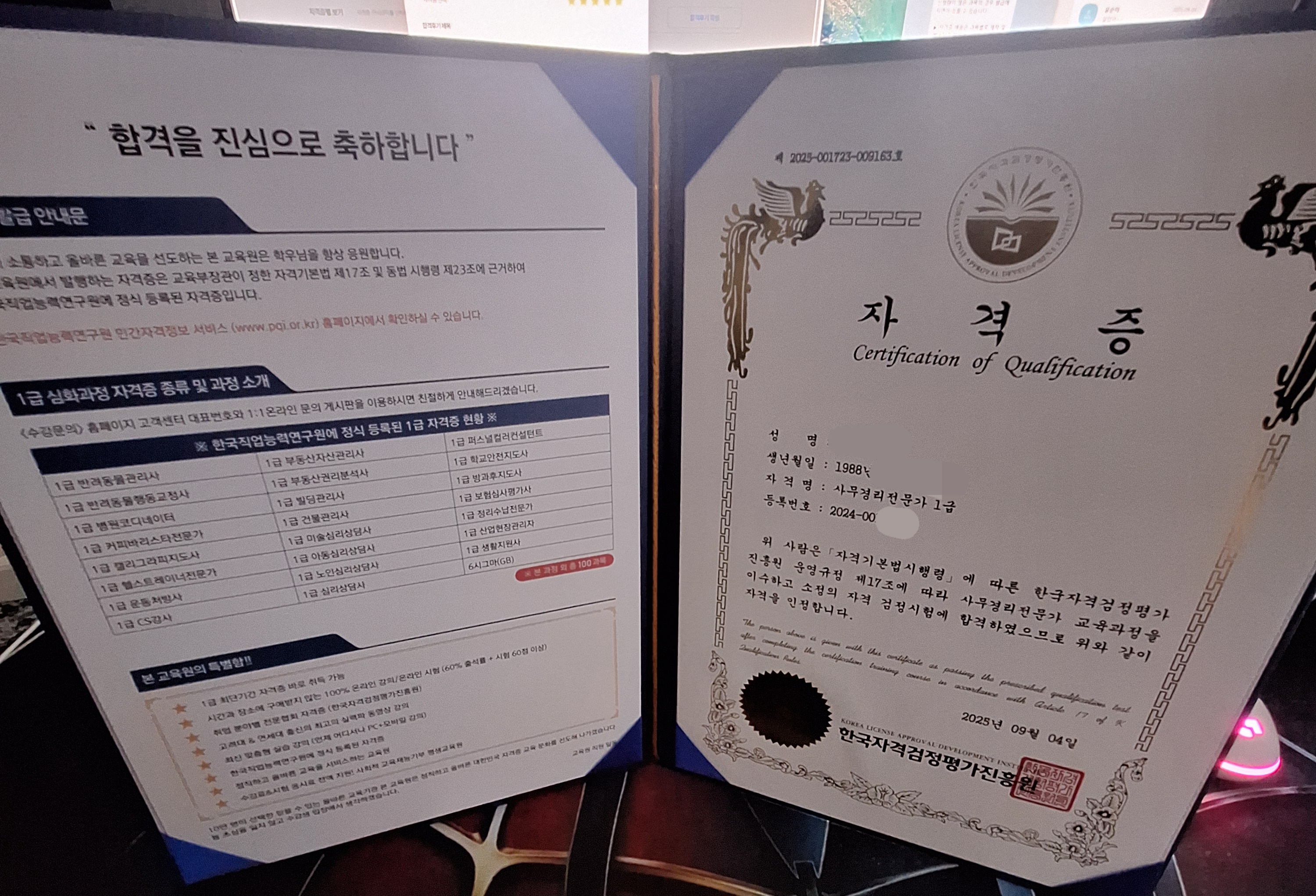한국자격증협회에서 아동발달 자격증 과정이 있다는 것을 알게 되었고, 망설임 없이 신청하게 되었습니다.