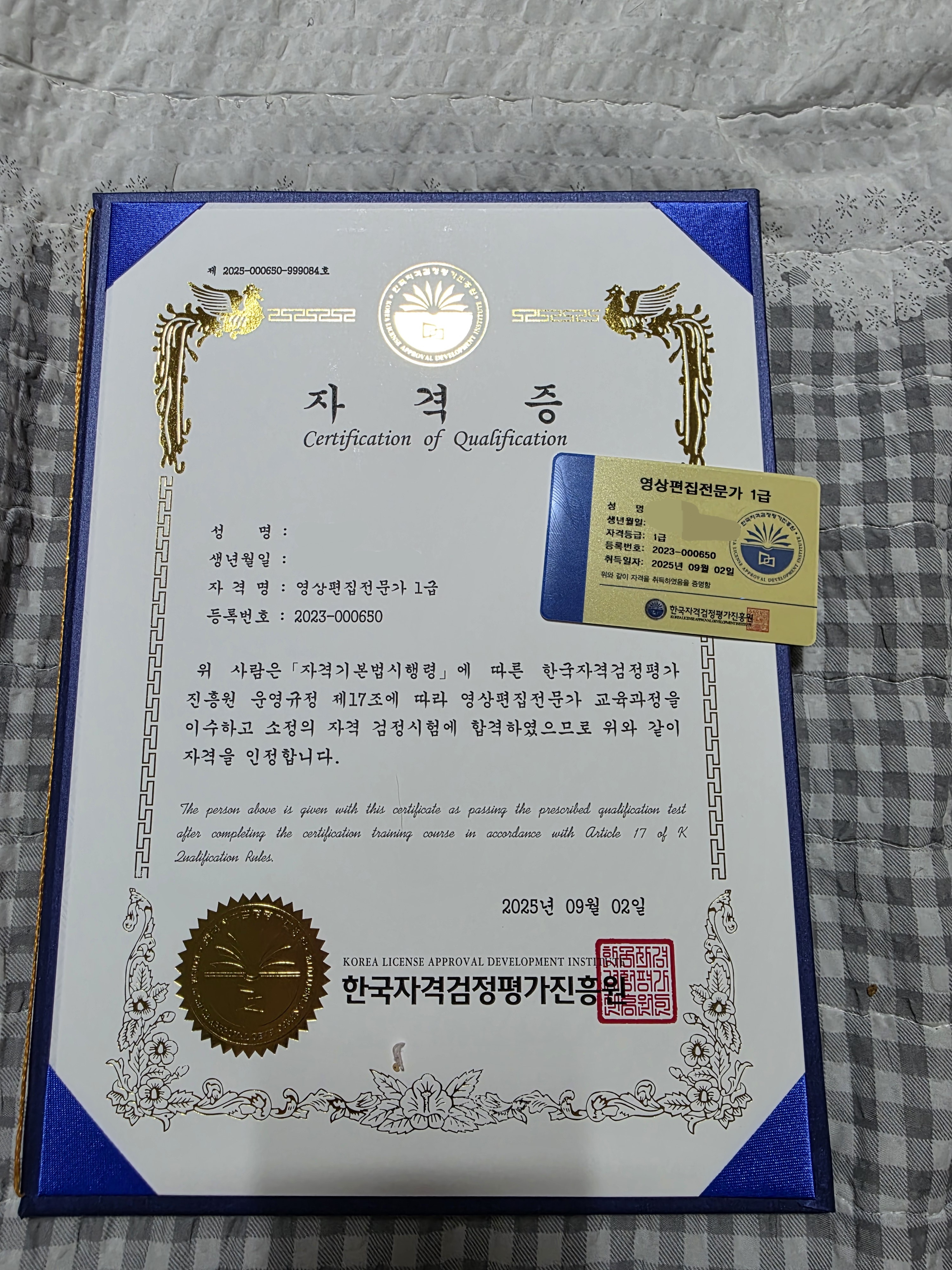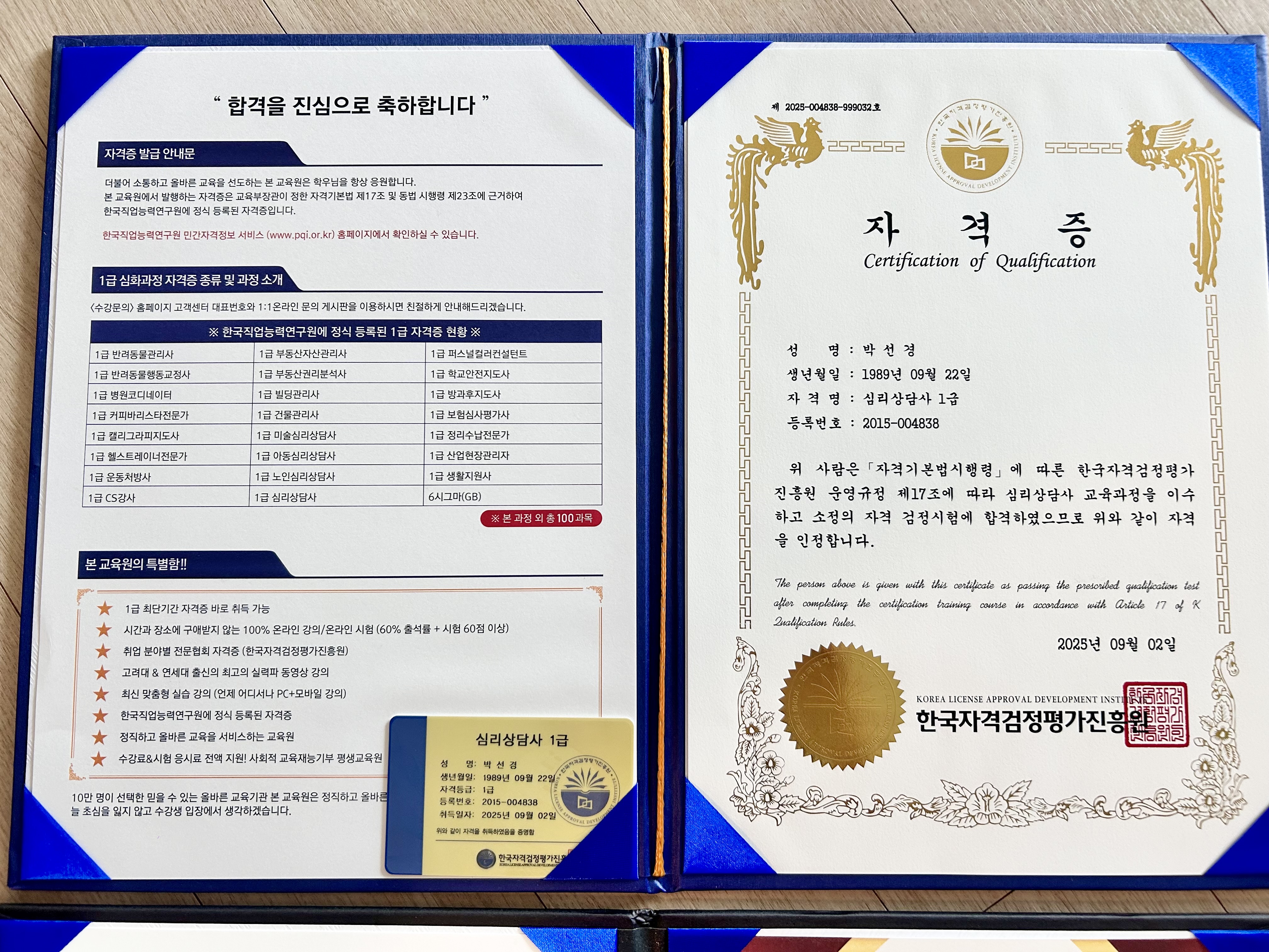 합격후기 작성 시 자격증을 받으신 사진을 같이 첨부해주셔야 합니다.