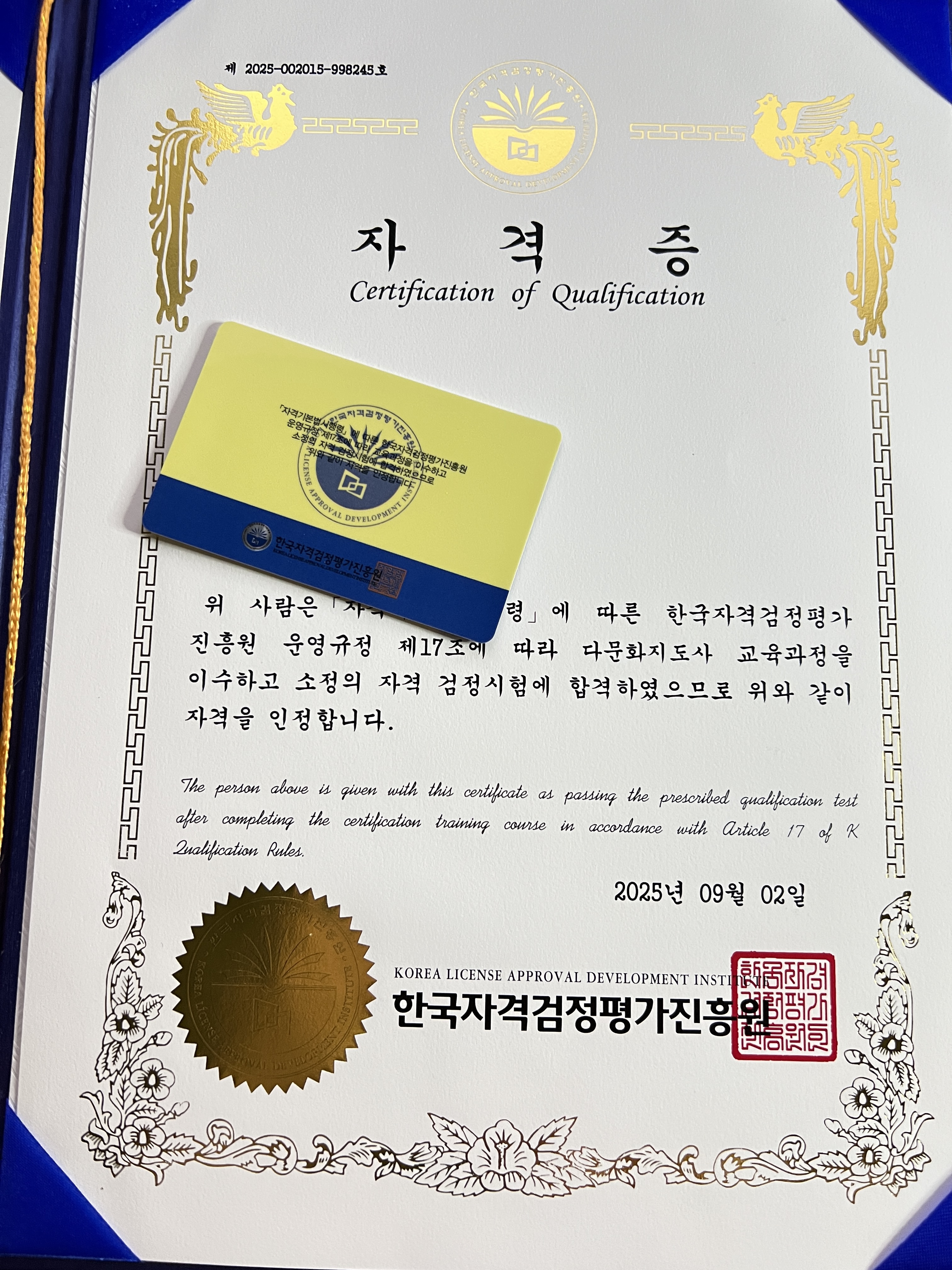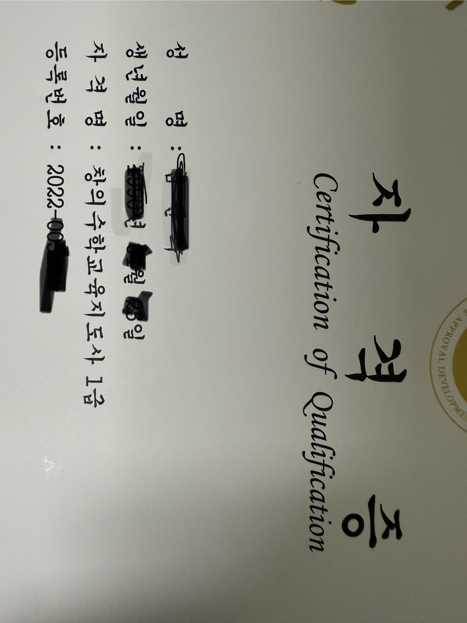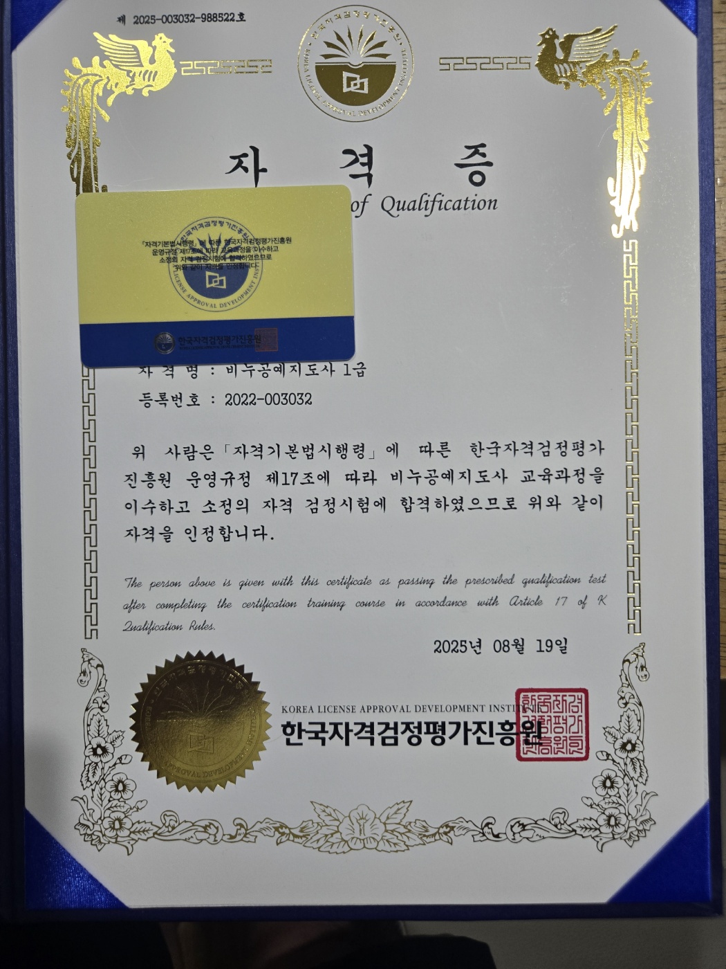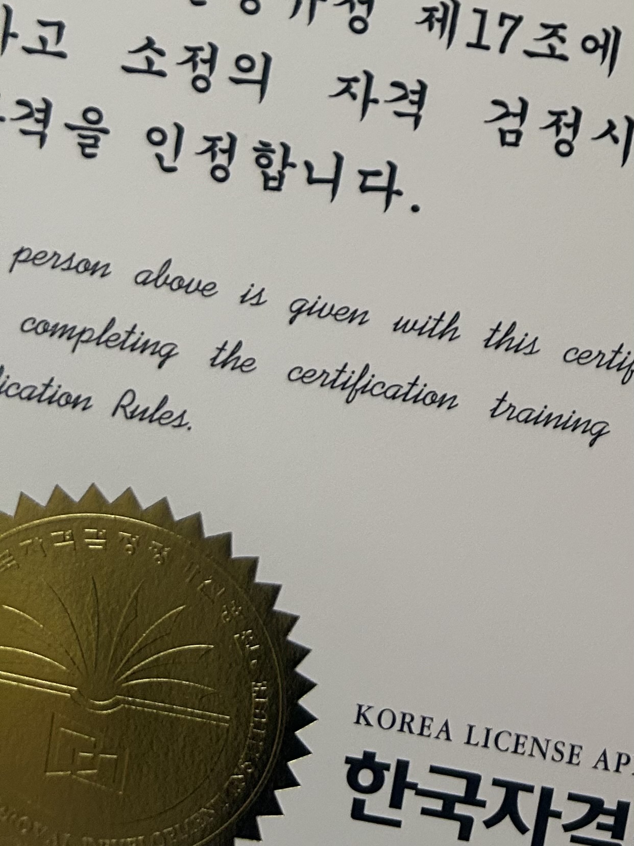 요즘 자신감 자존감이 바닥이었는데~자격증 따고 기분 업~짱 좋습니당^^넘 행복해요~다른 자격증도 또 도전중입니다~전부 다 취득 하고싶네요~넘 감사합니다~