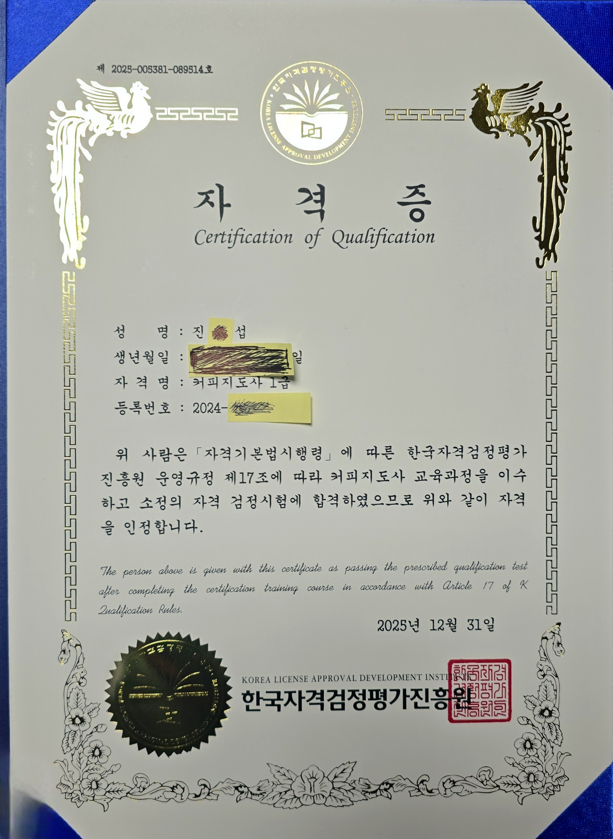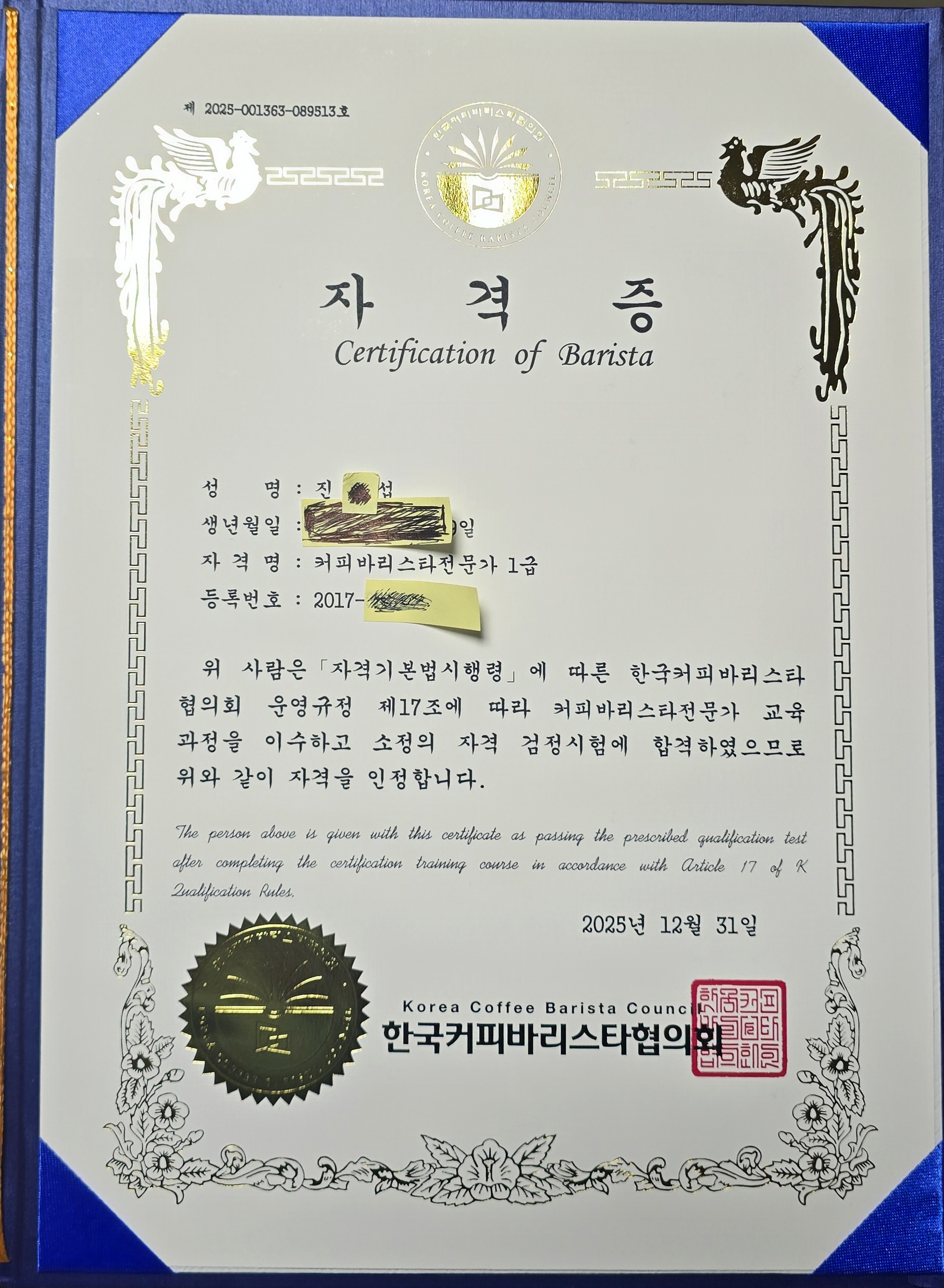 커피바리스타전문가 1급