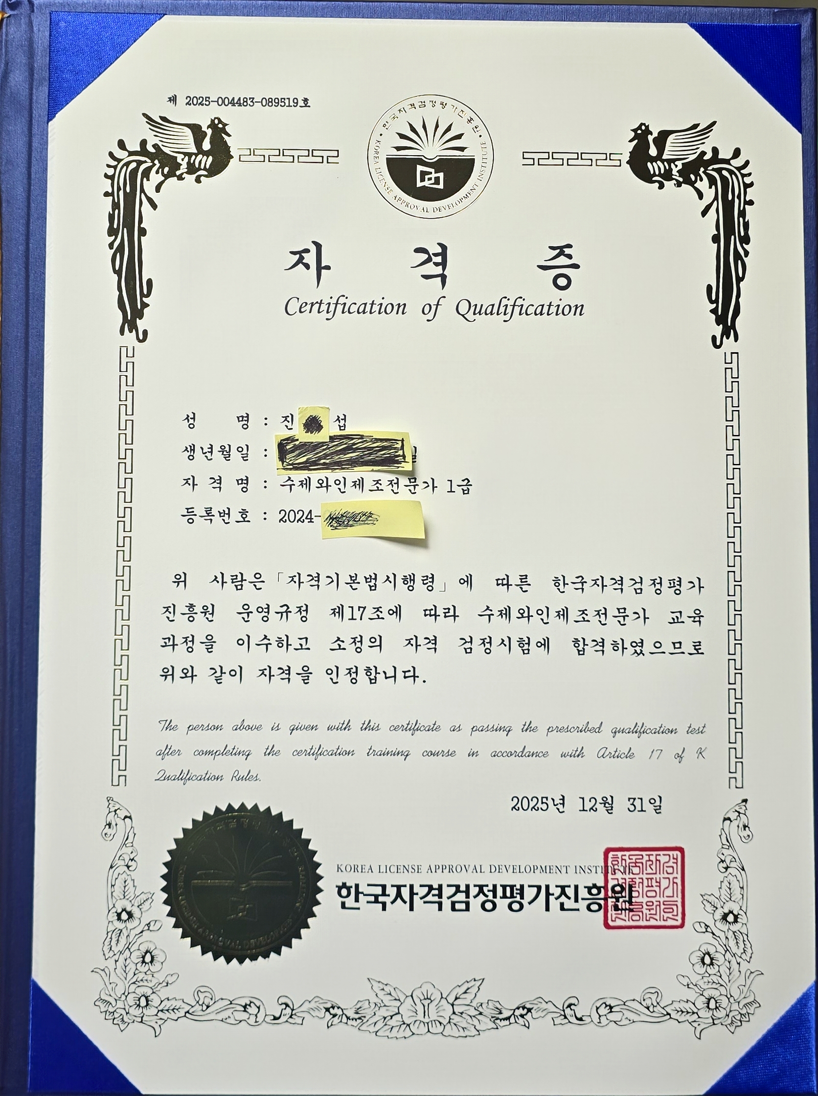 수제와인제조전문가 1급 과정을 수강하며 와인을 단순히 마시는 대상이 아니라 이해하고 관리하는 대상으로 바라보게 되었습니다. 제조 과정과 기본 이론이 차분하고 쉽게 구성되어 있어 부담 없이 학습할 수 있었고, 새로운 분야에 도전하는 즐거움도 느낄 수 있었습니다. 나이나 배경과 관계없이 배움의 기회를 넓혀주는 의미 있는 자격증 과정이라고 생각합니다.