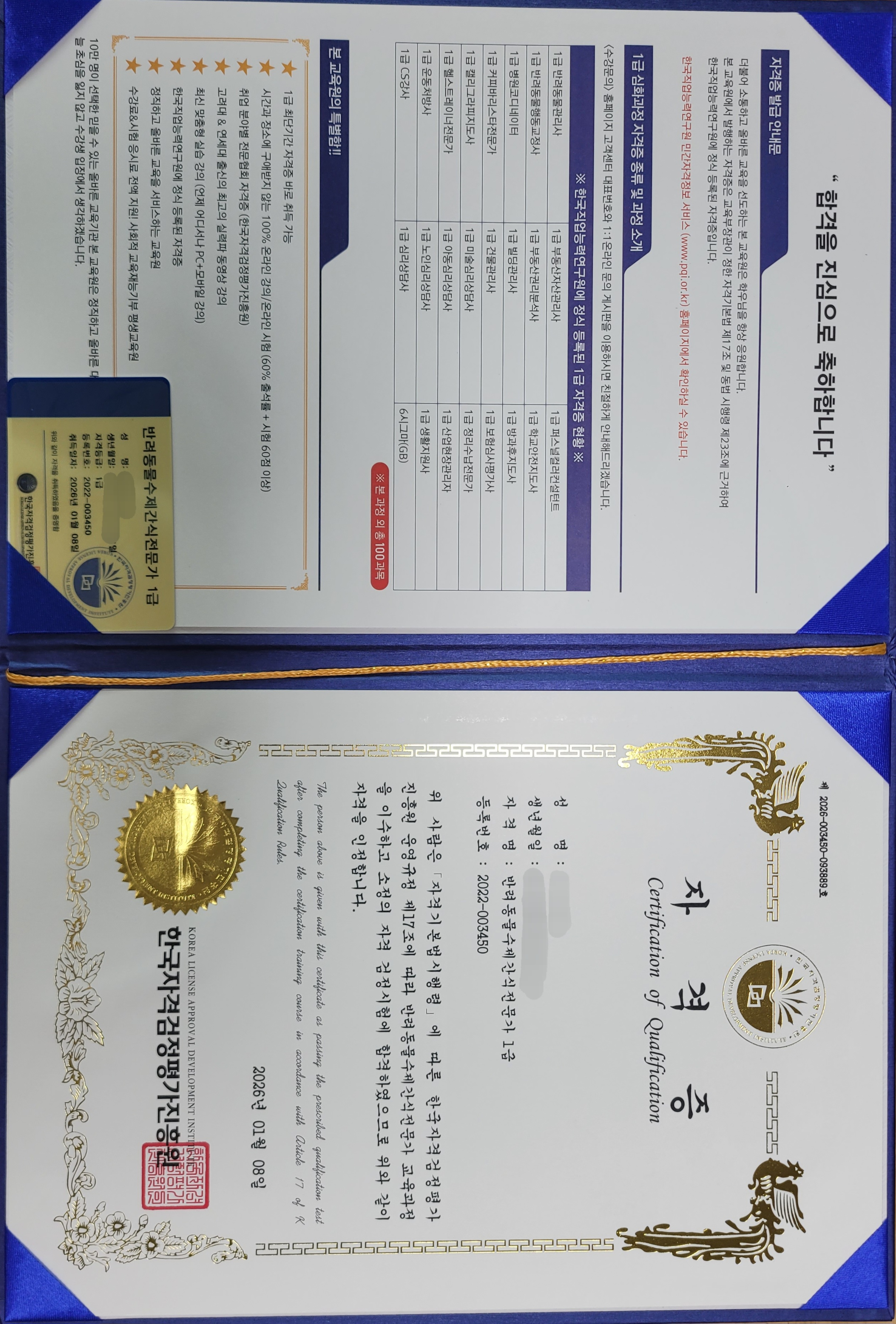 시간 날때마다 잼있게 동영상강의보니 어느새 시험볼 자격이 되네요. 나중에 동물병원 알바할 때 이력서 쓰기도 좋을거 같아 따놓았습니다. 굿굿.