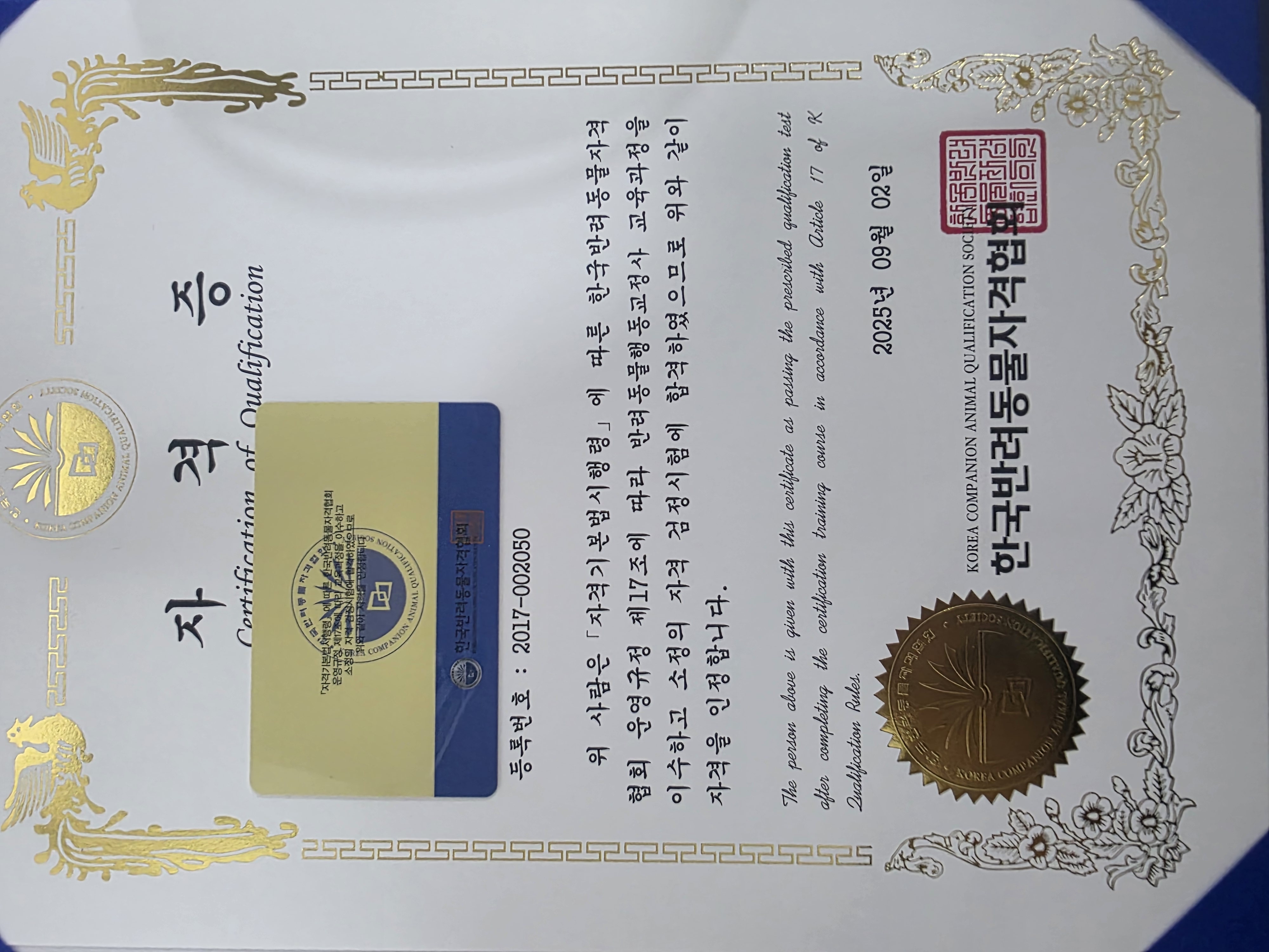 20살이 되어서 자격증 하나는 따자라고 마음을 먹었었는데 한국자격증 협회 덕분에 0원에 강의를 듣고 반려동물행동교정사 자격증을 딸 수 있게 되었어요 열심히 듣다보니 자격증 시험을 만점으로 통과할 수 있게 되었네요! 열심히 공부해서 다음 자격증도 만점으로 통과하겠습니당!