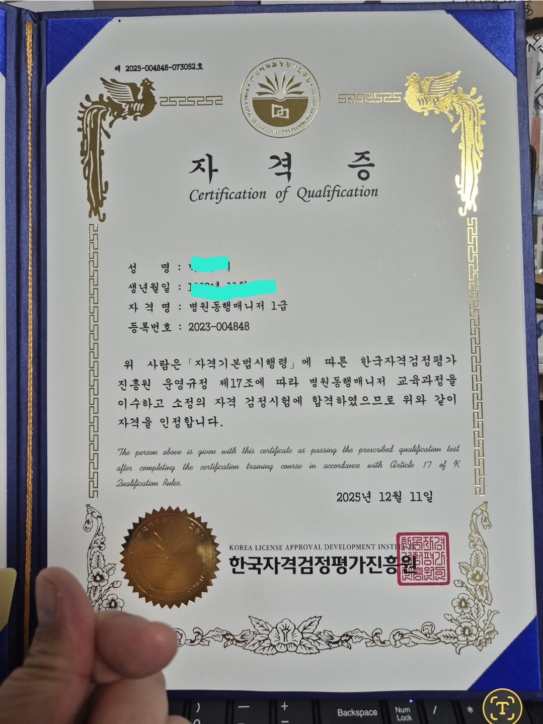 자격증 협회를 통해서 다양한 자격증의 세계를 알게 되었어요. 특히 병원동행매니저를 통해 경력단절의 시간을 안녕하고 새로운 도전을 하게 되는 시작점이 된 듯 해서 참 좋습니다. 역시 배움이 사람을 더 즐겁게 하네요. 감사합니다. ^^