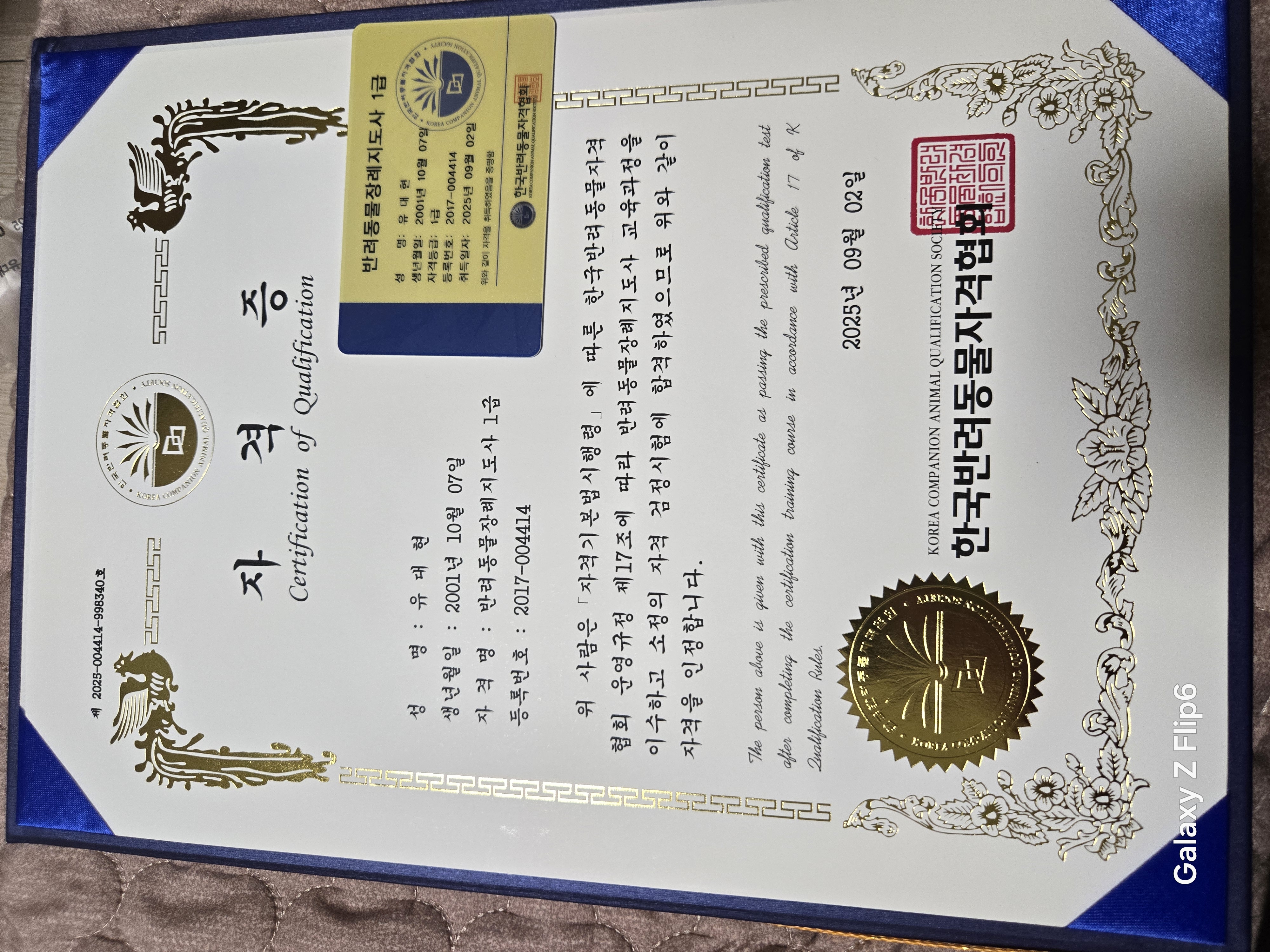 제20살때정말친동생처럼키우던반려견이있었습니다알바를끝내고집에가던중추위에오들오들떨던녀석을대려다3년을키웠습니다그녀석이떠나던날정말많은눈물리흘렀습니다제가사랑하던녀석을떠나보내던그감정을잊을수없어반려동물장례지도사의꿈을키웠습니다저와같은감정을느끼시는분들을위해함께좋은곳으로보내주고싶었습니다강사님이잘강의해주시고또이런기회를주셔서드디어도전을했고자격증을취득했습니다
