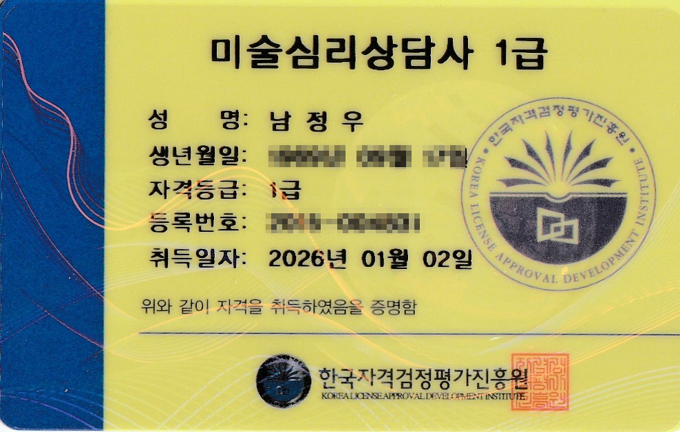 제가 자격증을 따고 또 하나의 스펙이 쌓아져 갔다는 자부심보다는, 미술을 통하여 우리 장애인들에게 보다 효과적이고 제대로 도움을 줄 수 있는 상담사가 되었다는 것이 훨씬 더 기쁘고 뿌듯하고 든든할 뿐입니다.