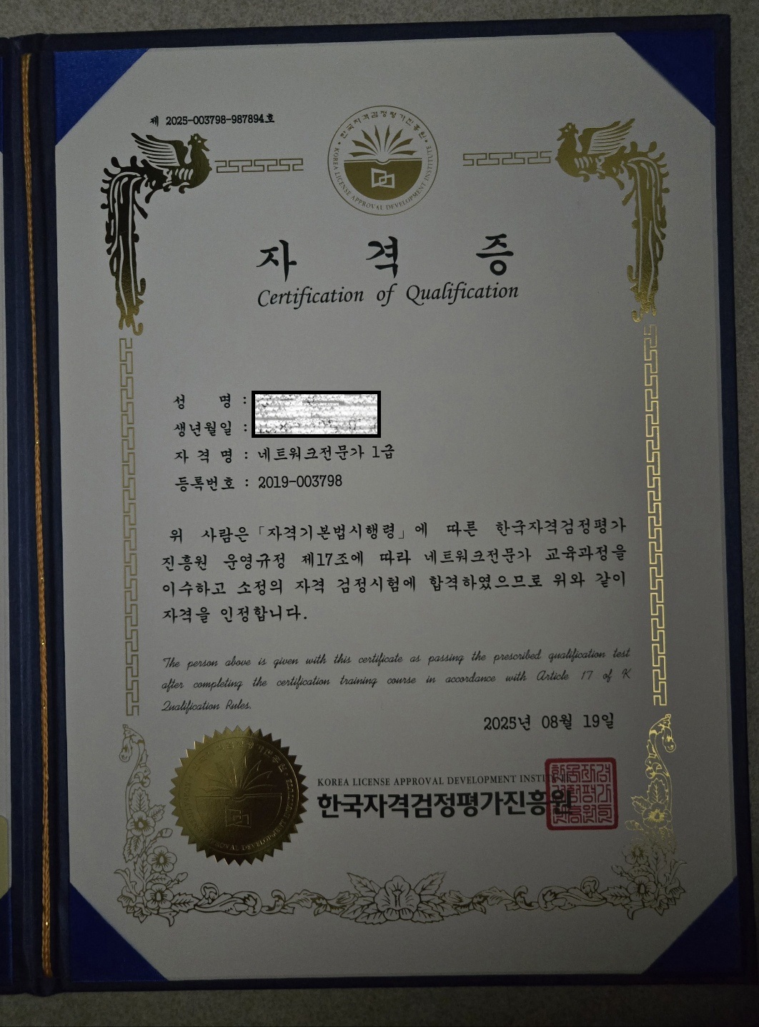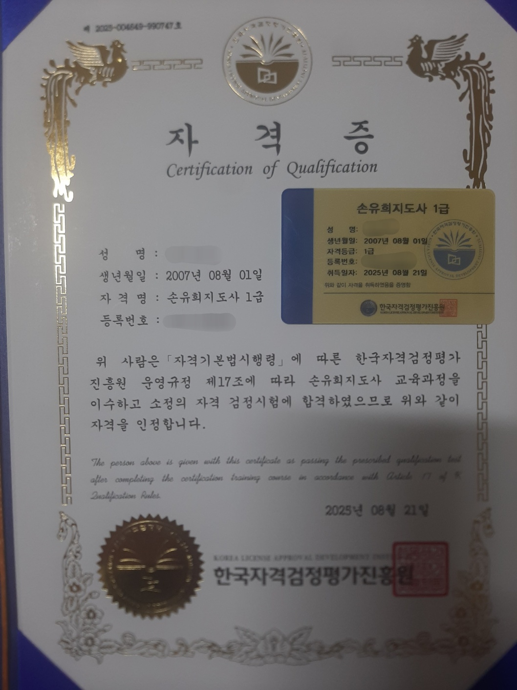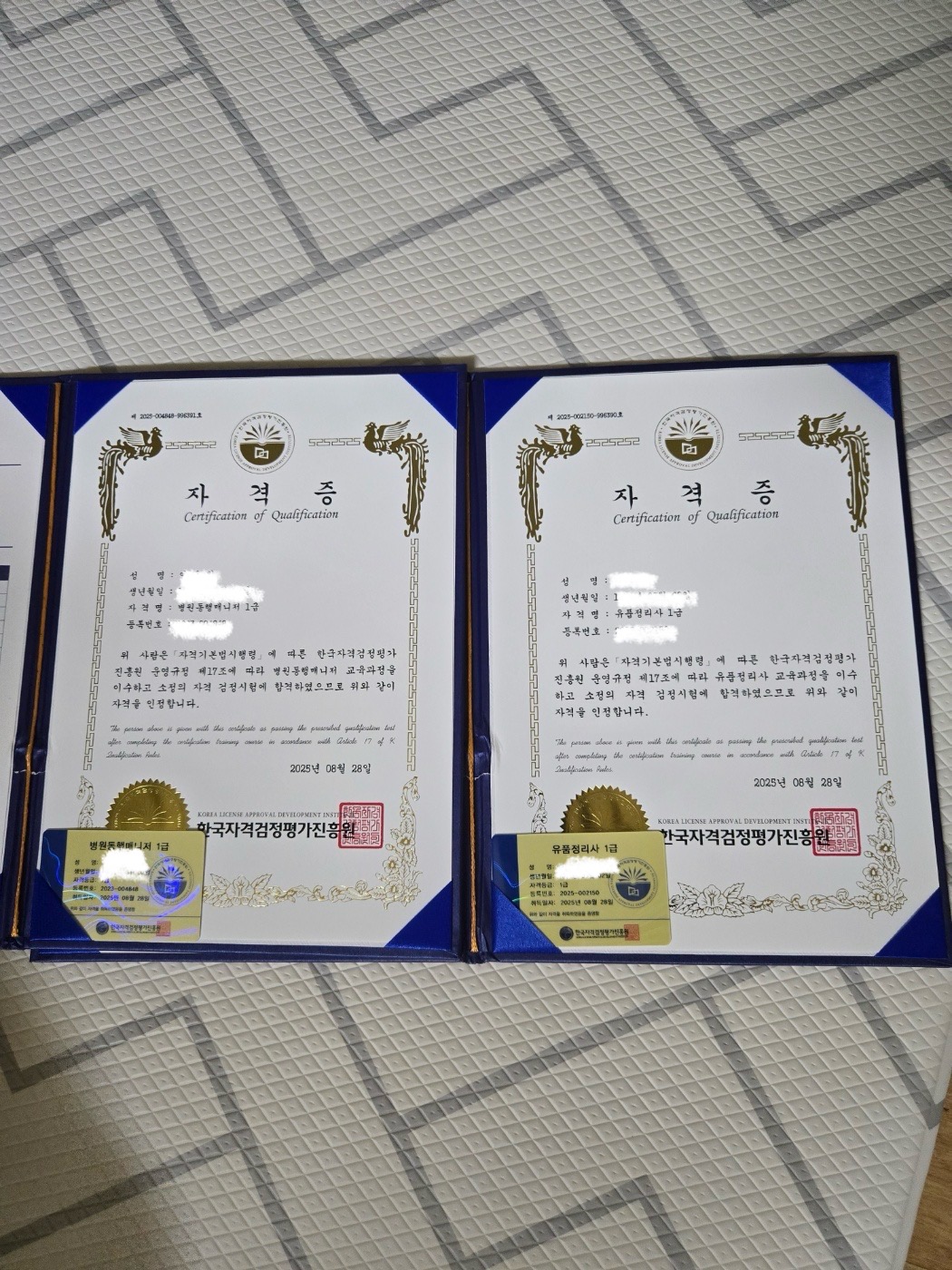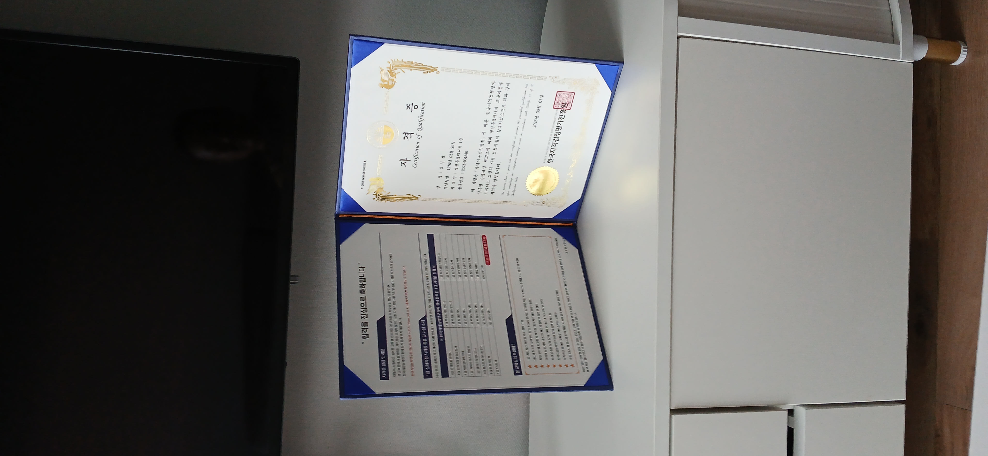 오전에알바끝나고하루한번씩강의들은게거의한달된거같아시험쳤더니 덜컥합격해버렸네요.놀라면서도사실넘기뻤어요.이나이에자격증땄다니깐주변에서다들칭찬해주시고기분엄청좋아요.무엇보다자격증집에도착되서보니제법멋있더라구요.다른거또도전해서계속시도해보려합니다.늦은거같았는데 이제시작이네요.여러분도홧팅입니다.