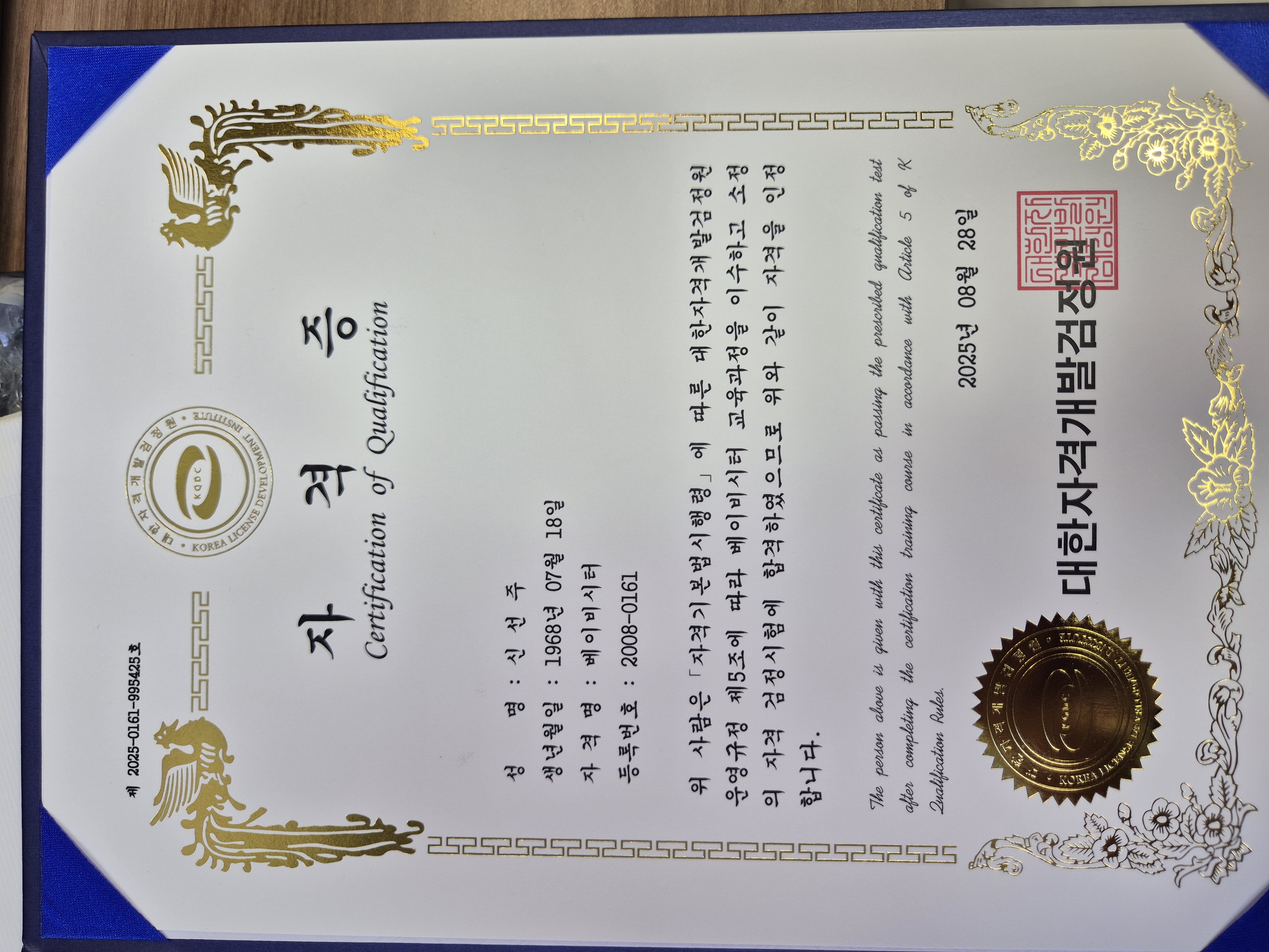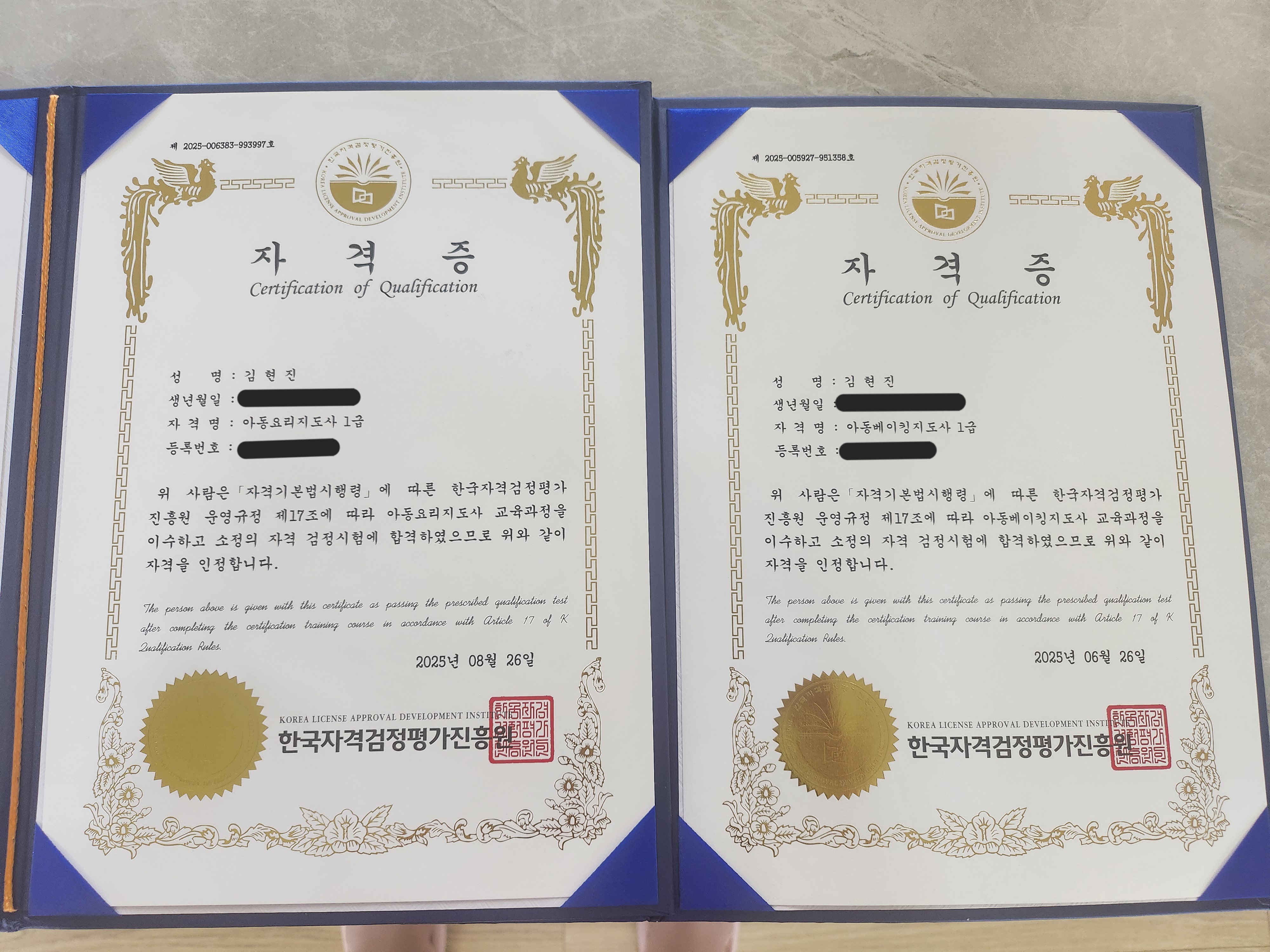 경단이 오래 되면서 자존감이 떨어져가고 우연히 알게된 한국자격증협회라는 곳에 가입해서 처음으로 딴 자격증 ㅎㅎ 고등학교 이후로 차음 딴 자격증이라 기분이 좋으네요 8월 초에 땄지만 후기를 이제 남기네요..다른것도 도전해봐야겠어요 ㅎㅎ