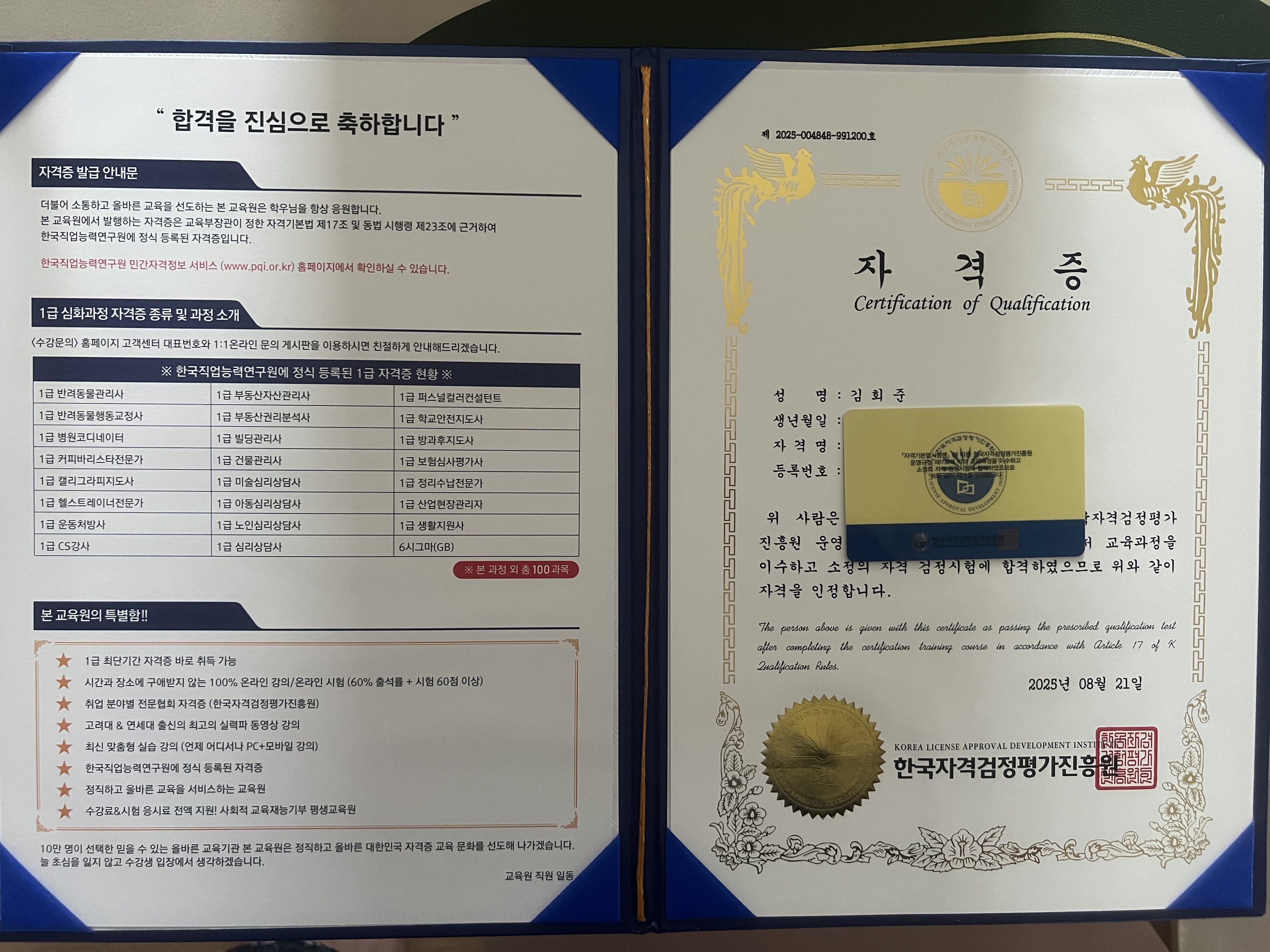 좋은자격증 취득하게 해주신 한국자격증협회및교수님들께 감사드립니다