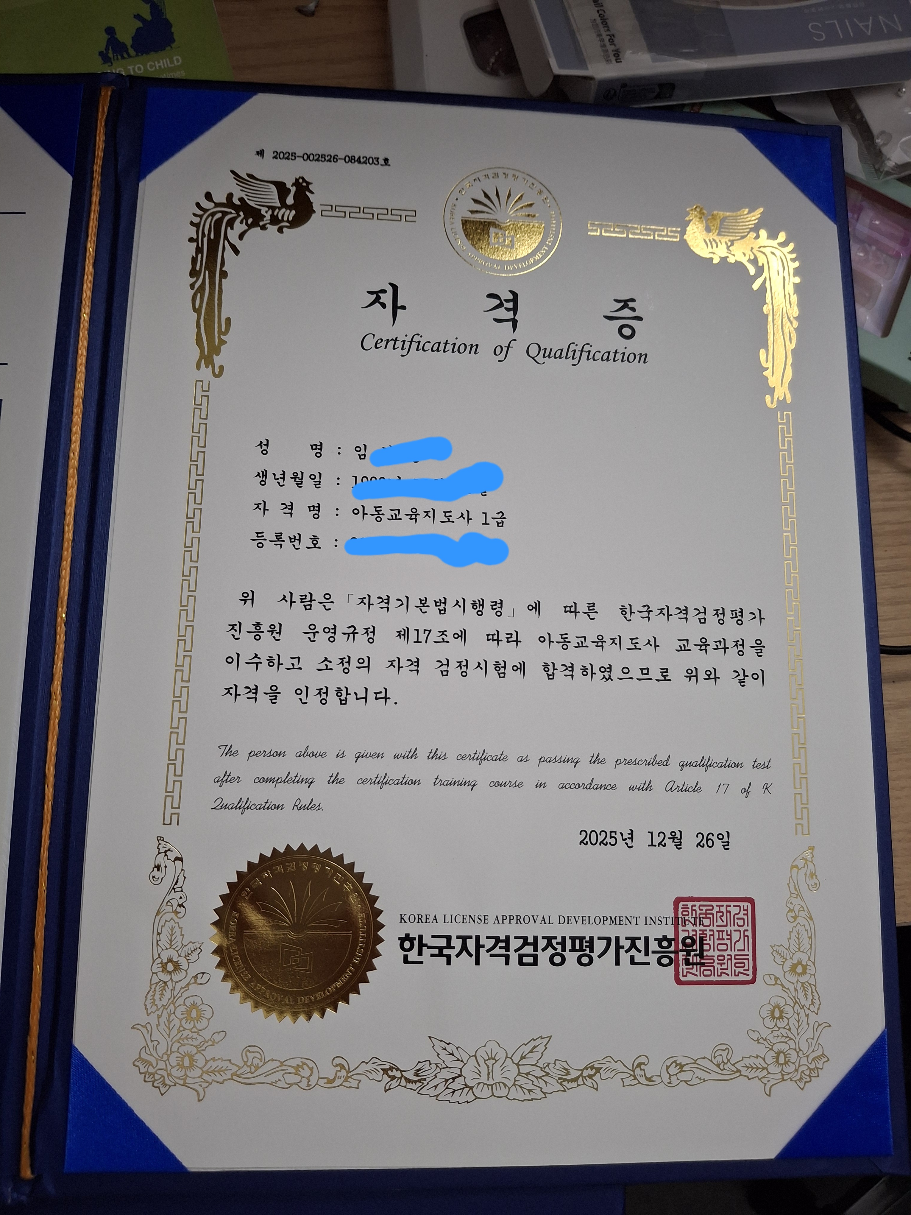아동교육지도사 1급합격했어요^^