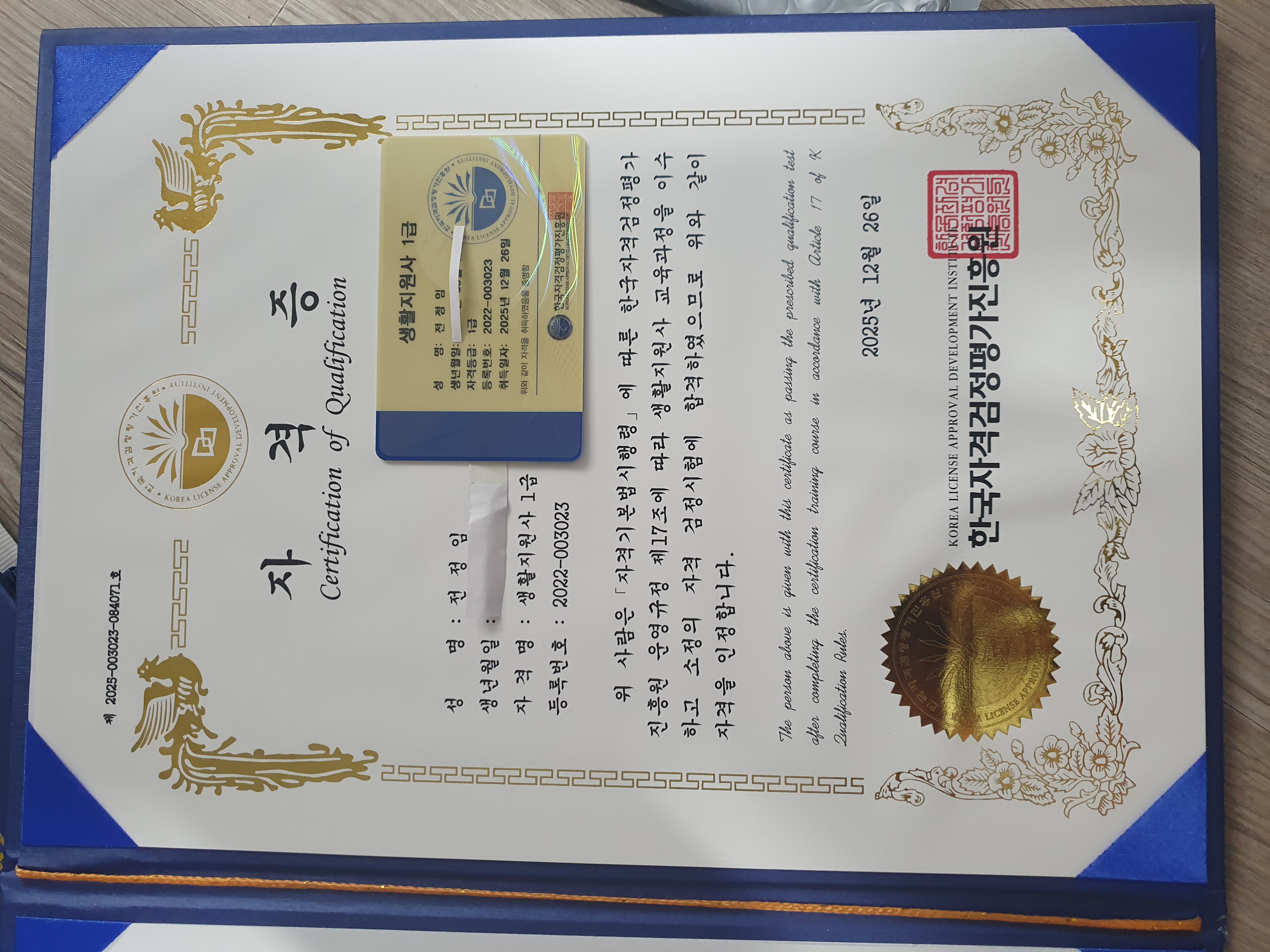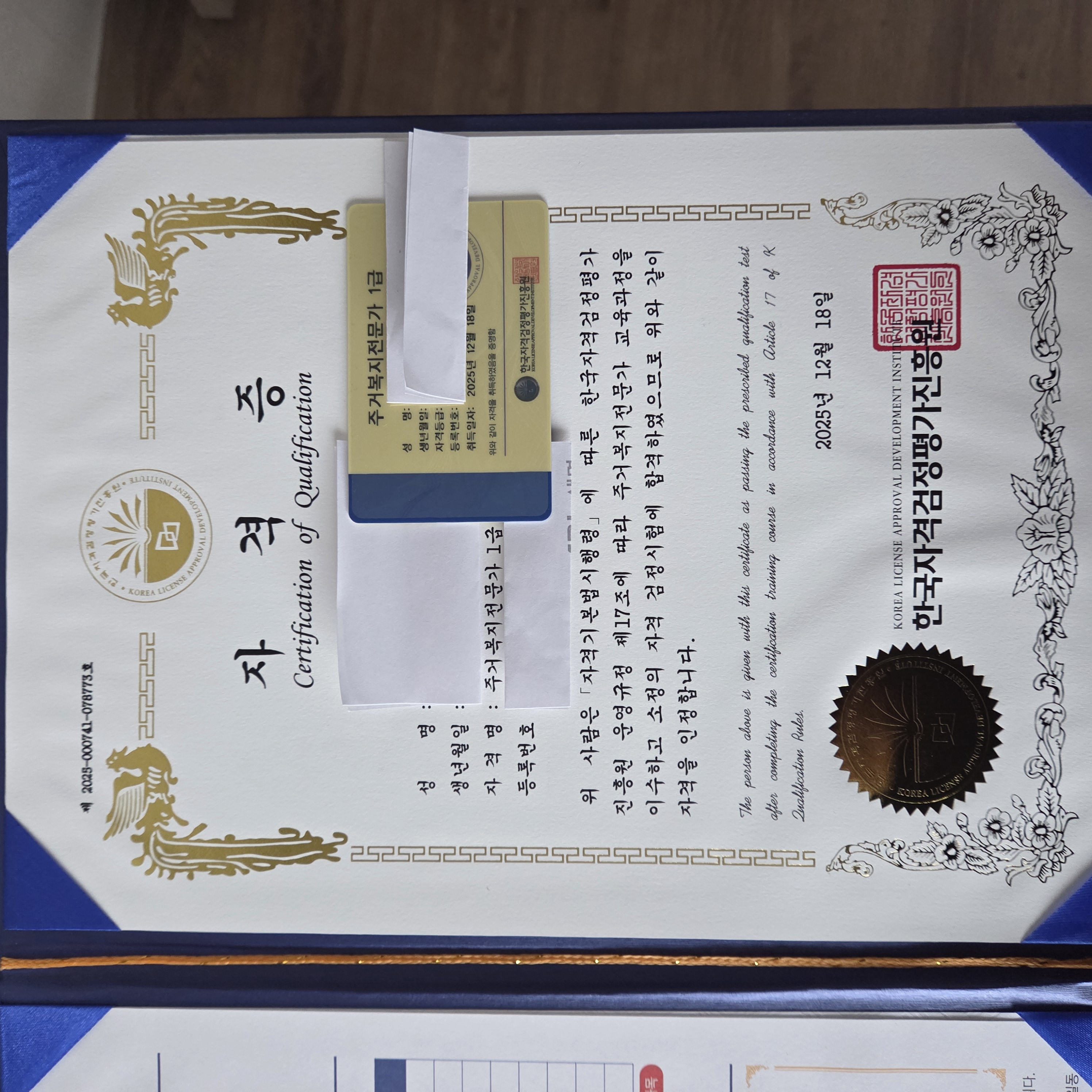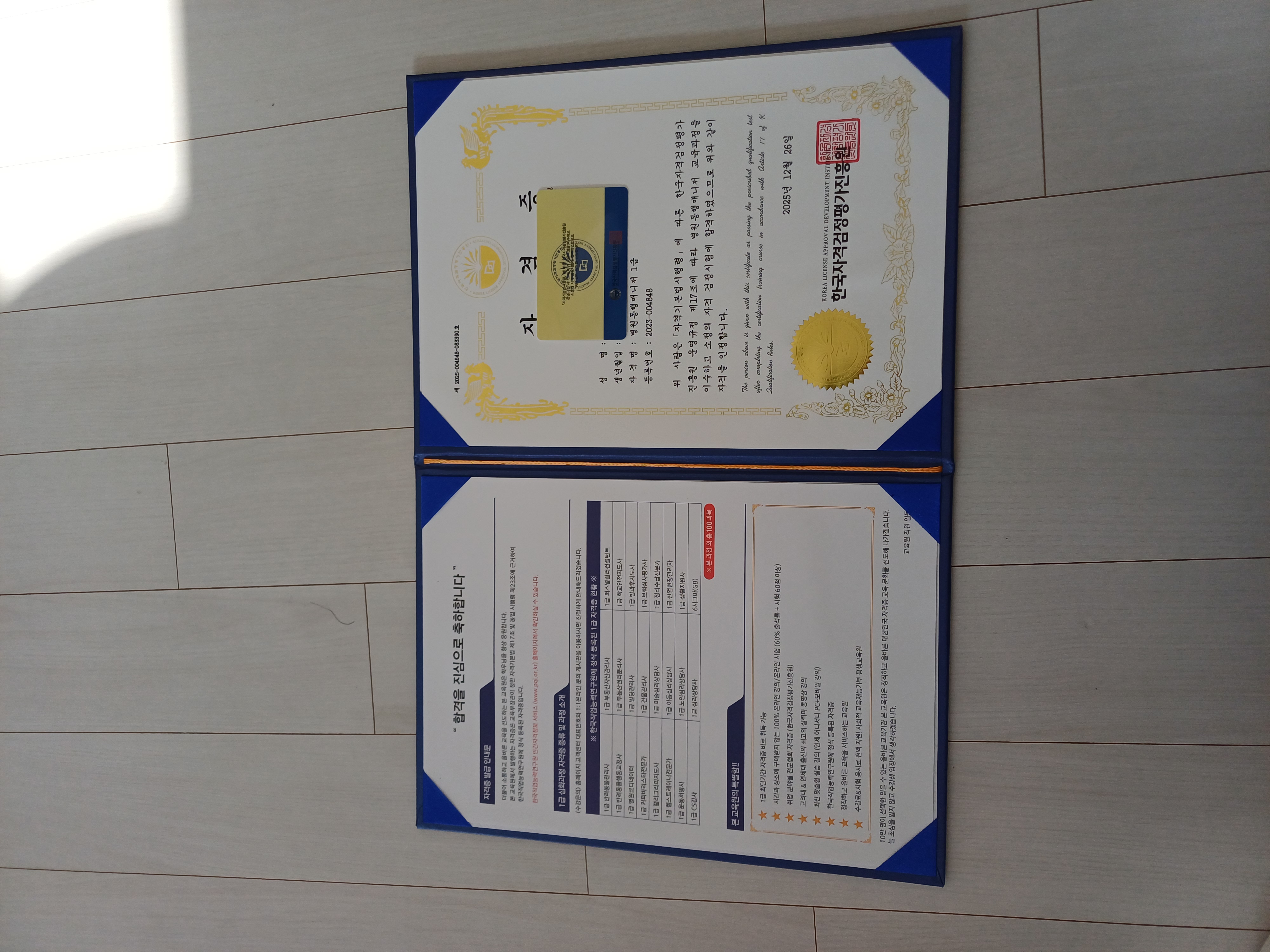 광고에서 알게 된 한국자격증협회서 이력서 기재되는 자격증도 받고 좋고 기쁩니다. 고맙습니다.