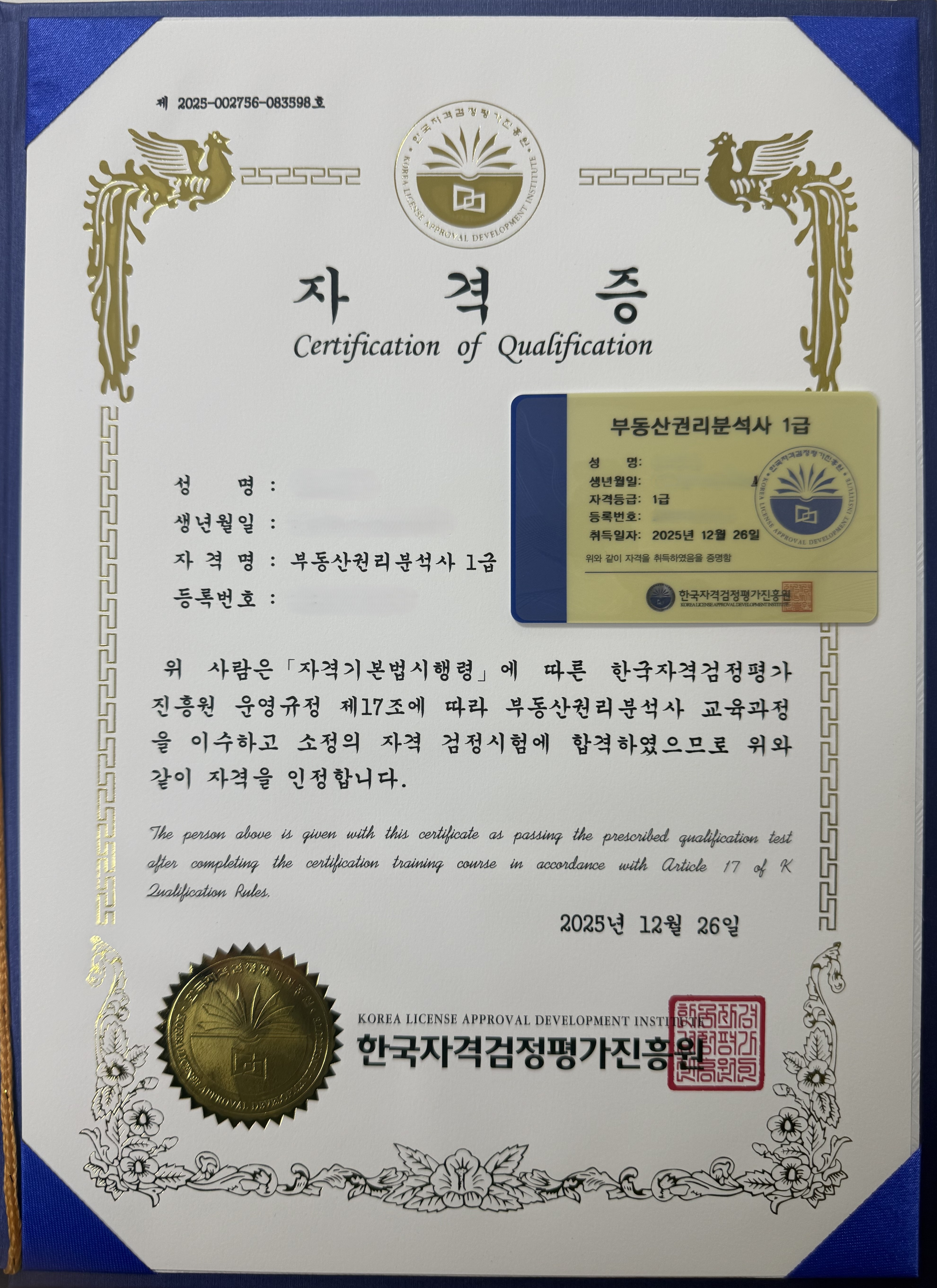 부동산권리분석사 1급 자격증 취득