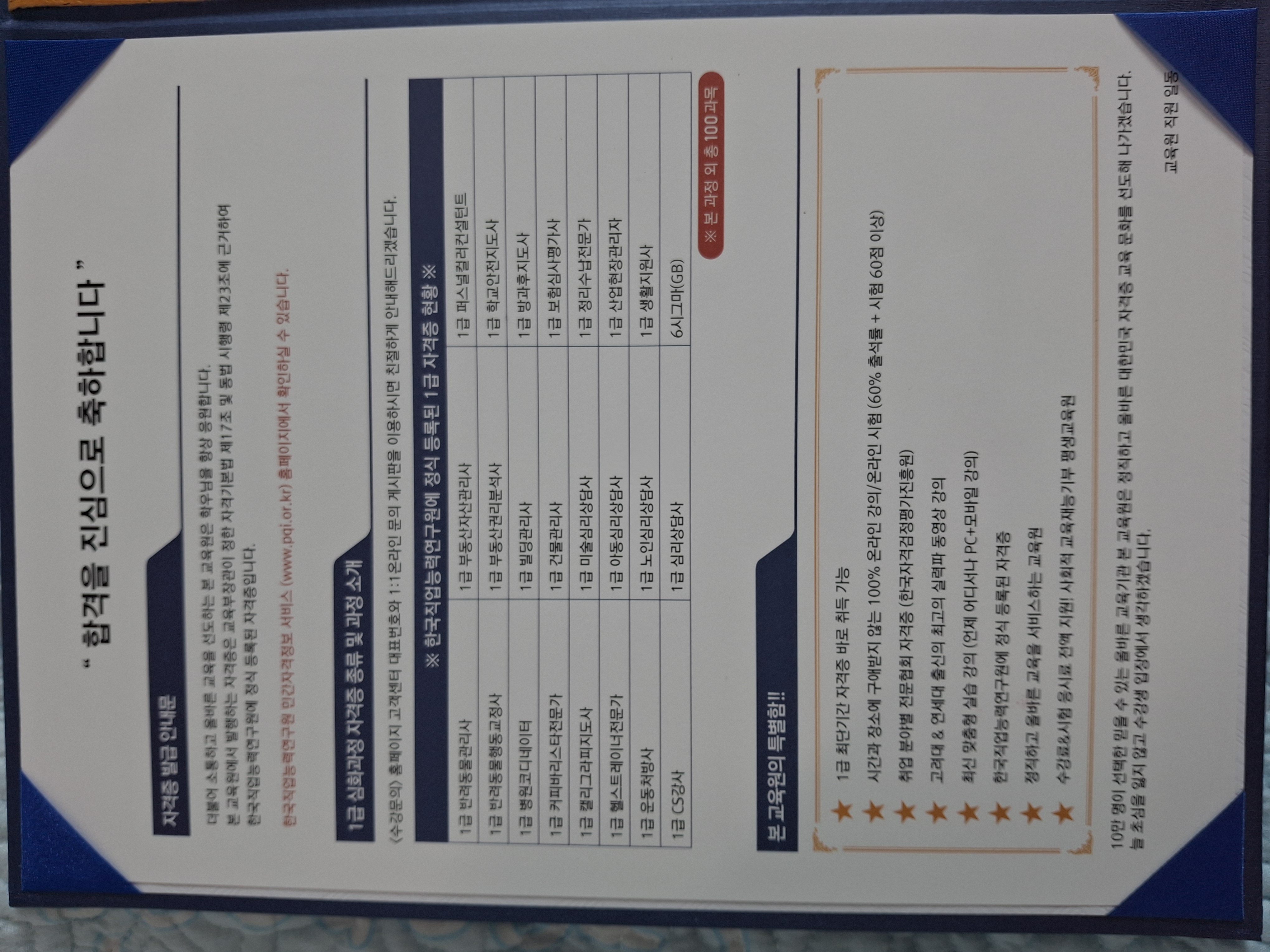 예전부터 생각 하고 있었던 자격증이라 더욱 마음이 편해지네요. 이로 인해 보다 나은 일들이 생기길 바래 봅니다.