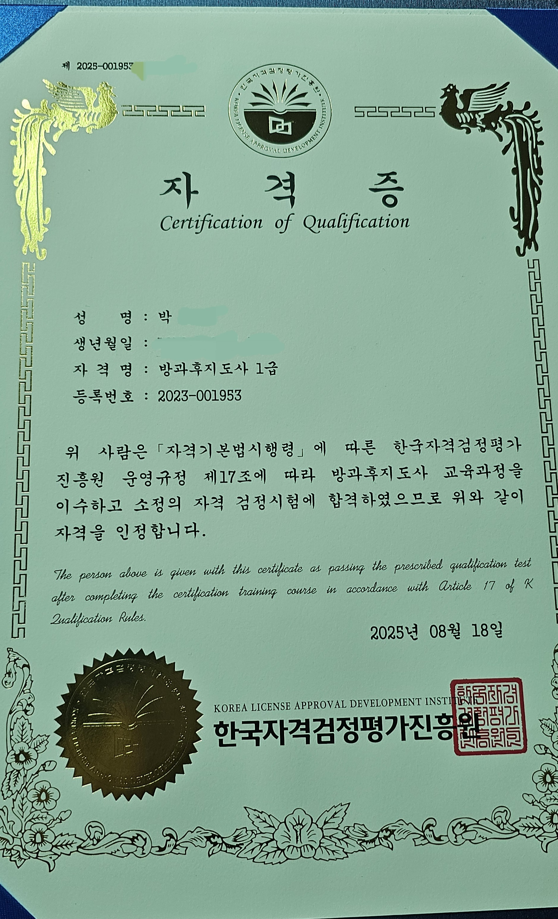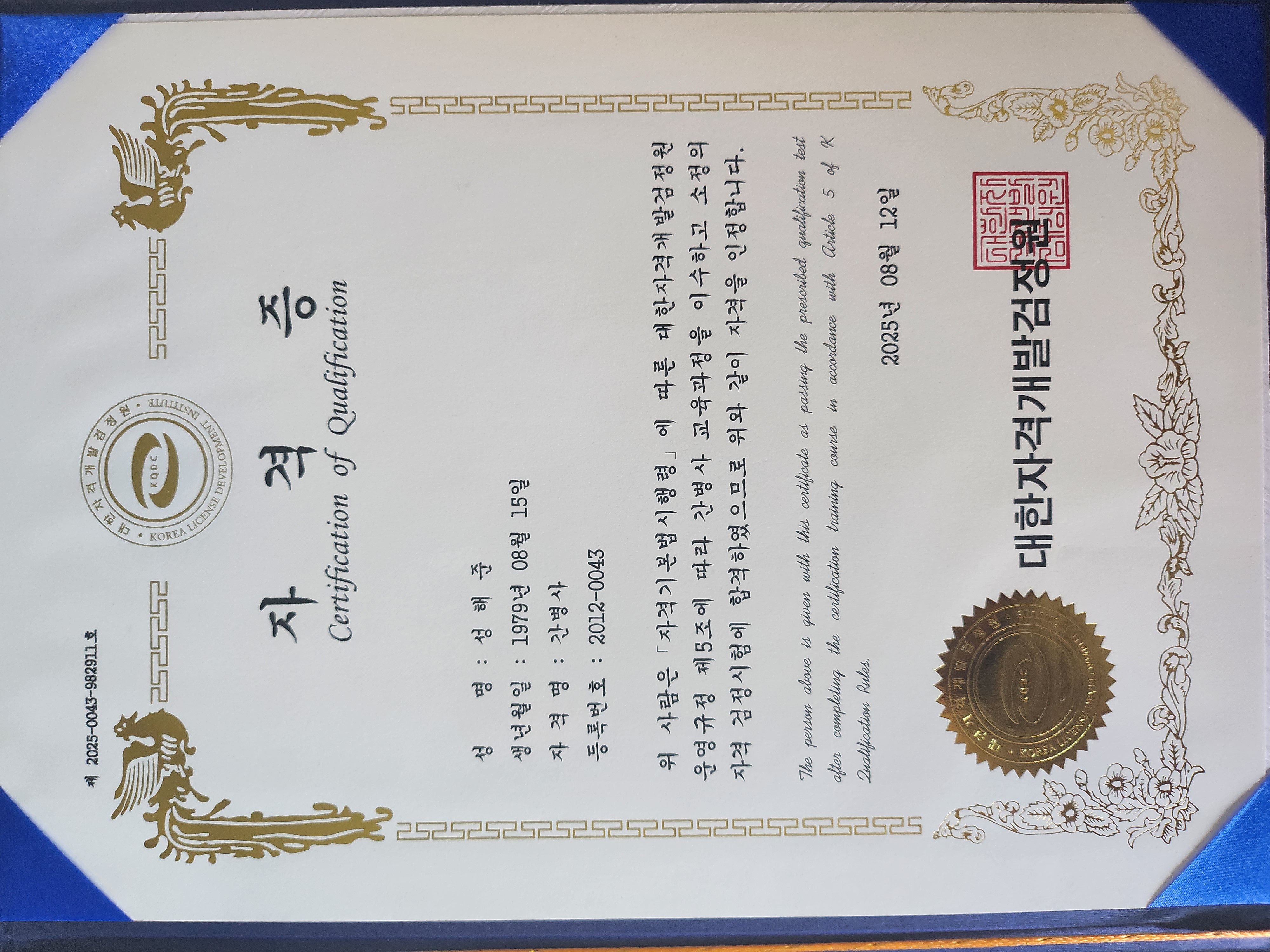 취득하고 싶었던 자격증으로 강의를 듣고 자격증을 취득하였는데 너무 기쁘고 미래에 대한 희망을 생기게 해주셔서 감사합니다~