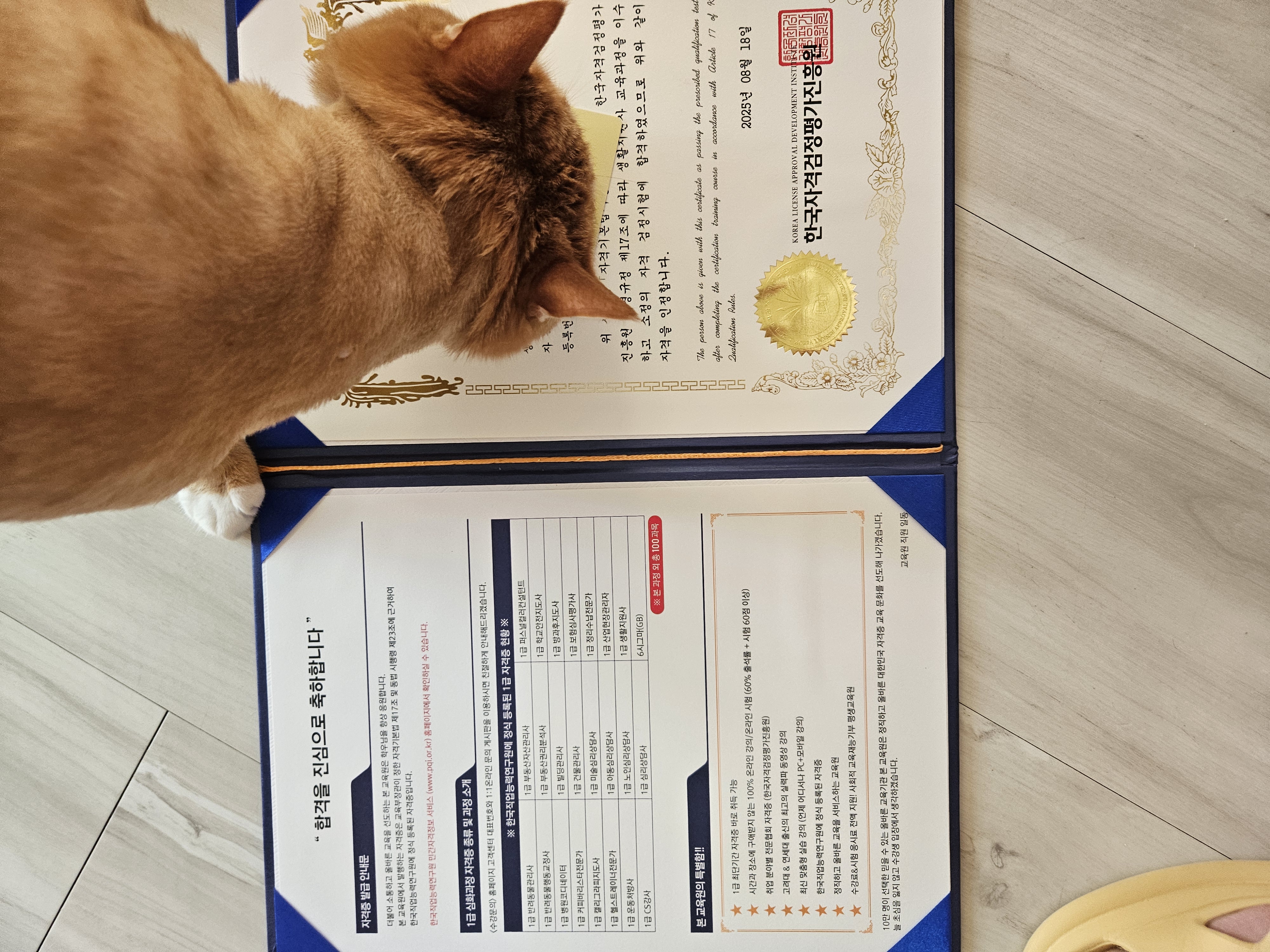 냥냥이도 가지고싶어 하는 자격증 입니다 편하게 취득해서 넘 좋아요