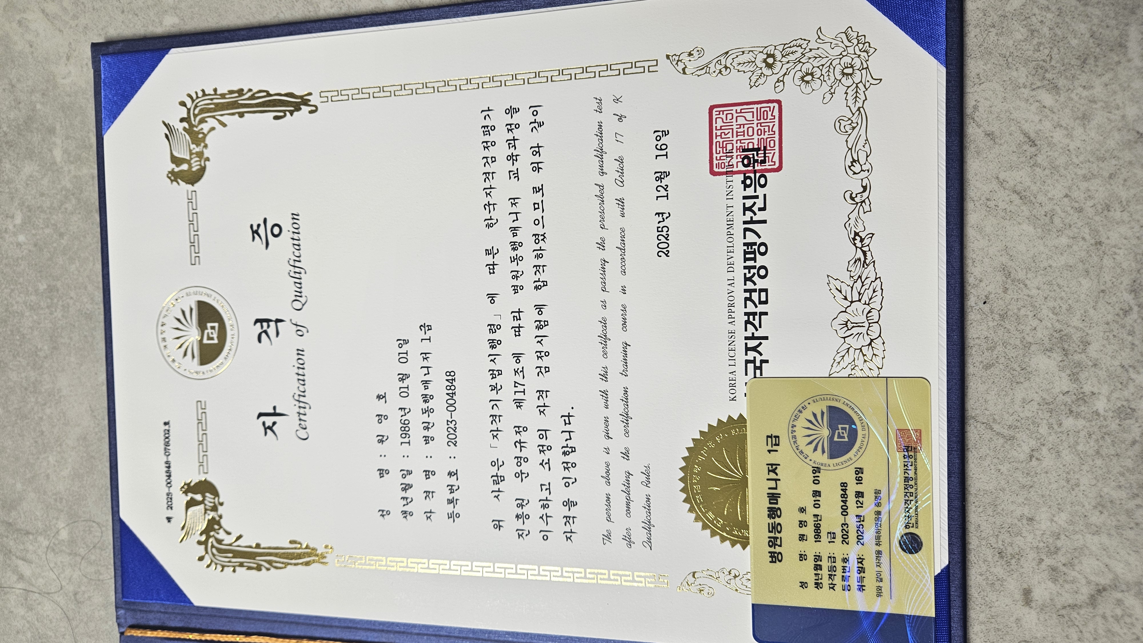 유투브로보다알게되어서 바로회원가입하고 노후직업대비로좋다고해서 병원동행 매니저 1급 수강신청 바로해서 수강듣고 기출문제풀어보고 시험봤는데 합격했습니다 너무나기분이좋았습니다