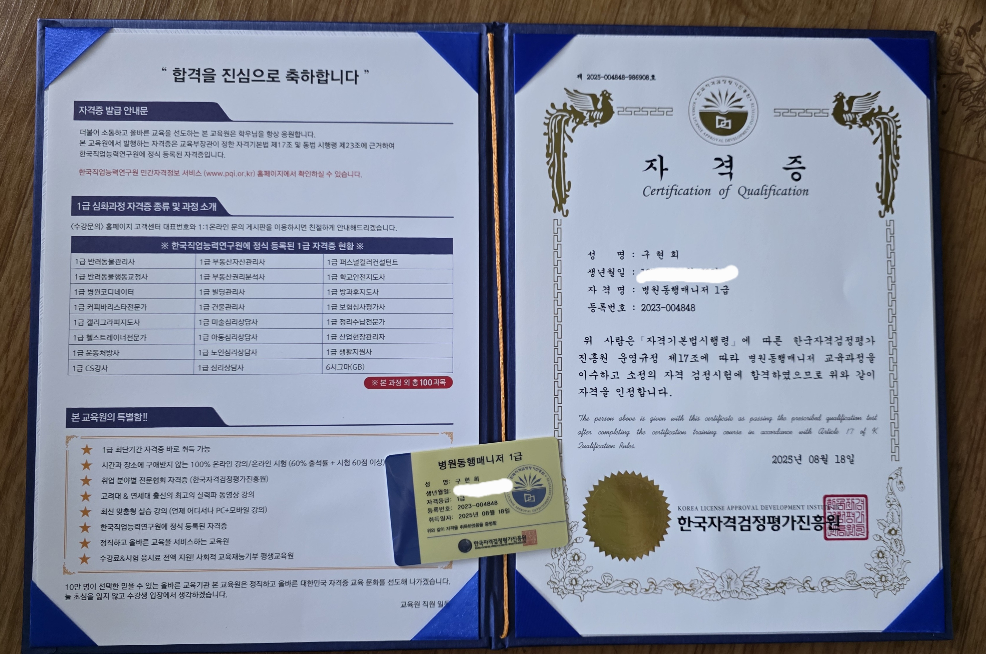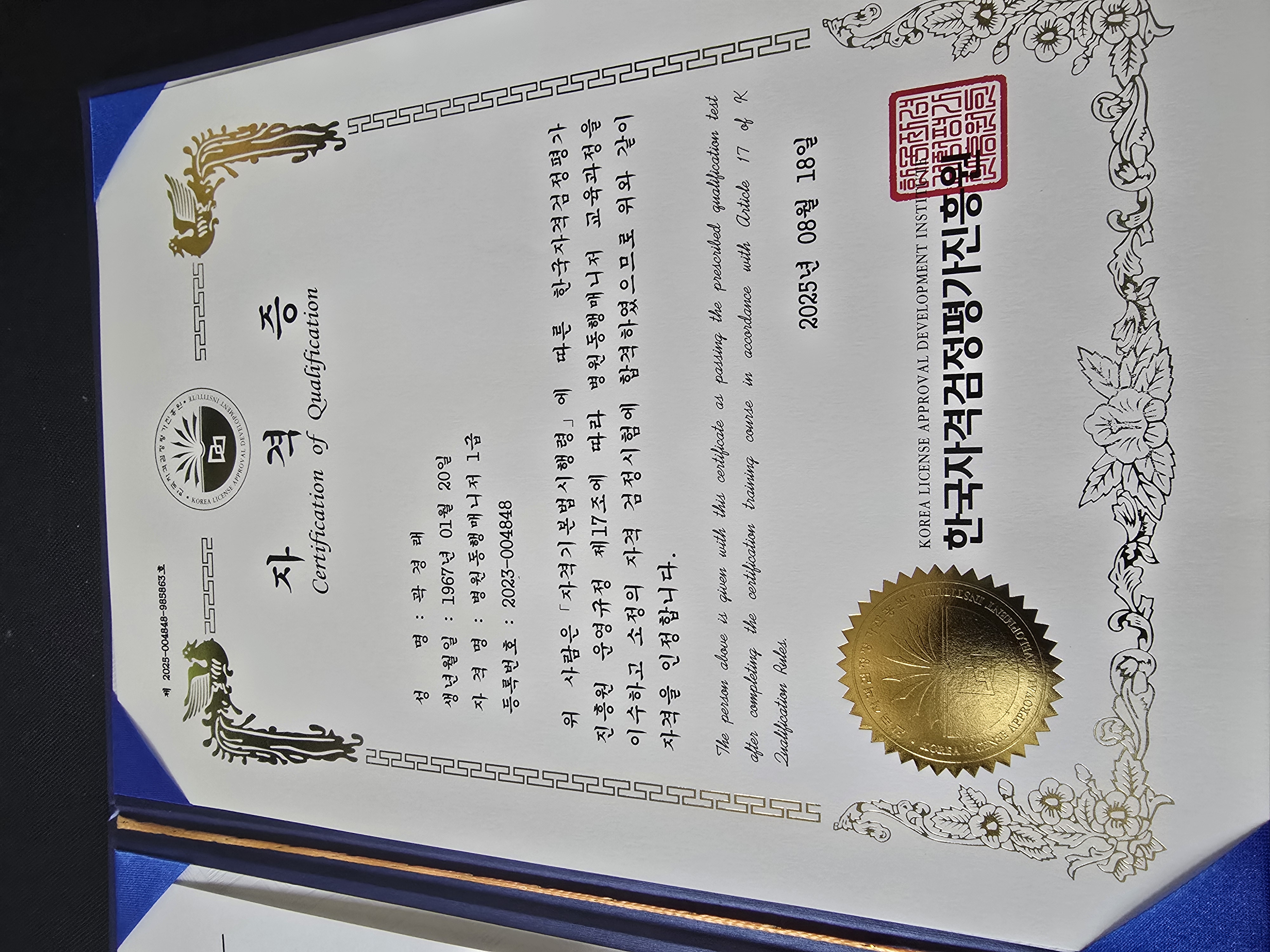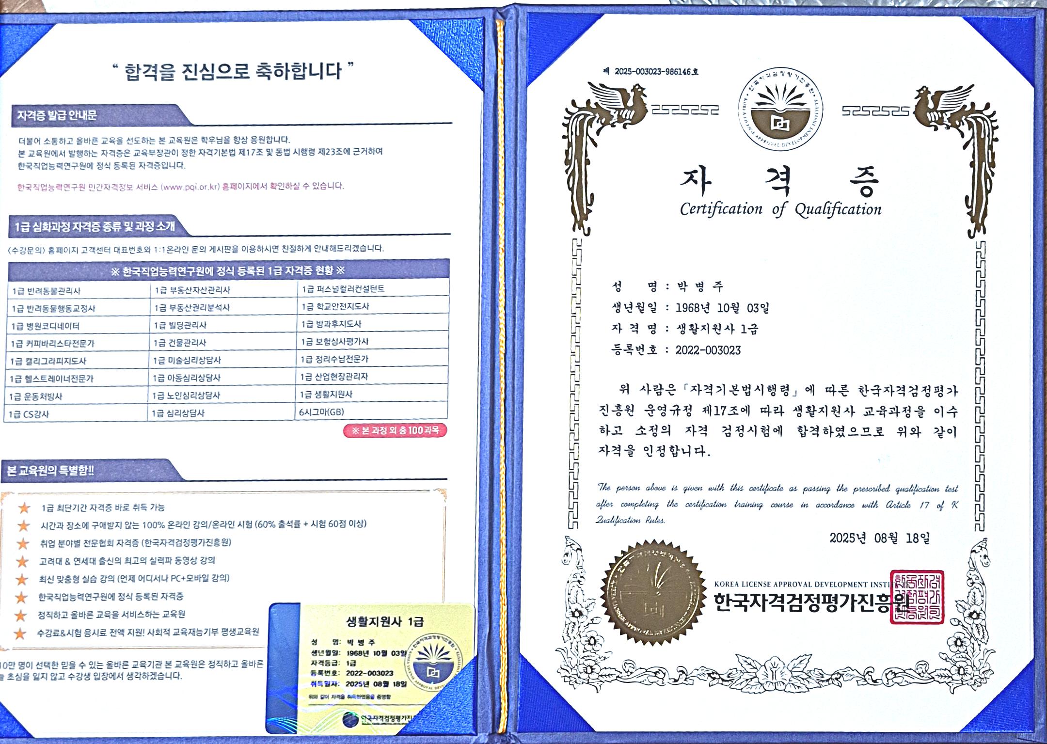 필요한 자격증을 취득하게 되어 기쁩니다. 좋은 도전할 수 있는 기회에 감사드립니다 필요한 다른 자격증 도전도 해 보겠습니다
