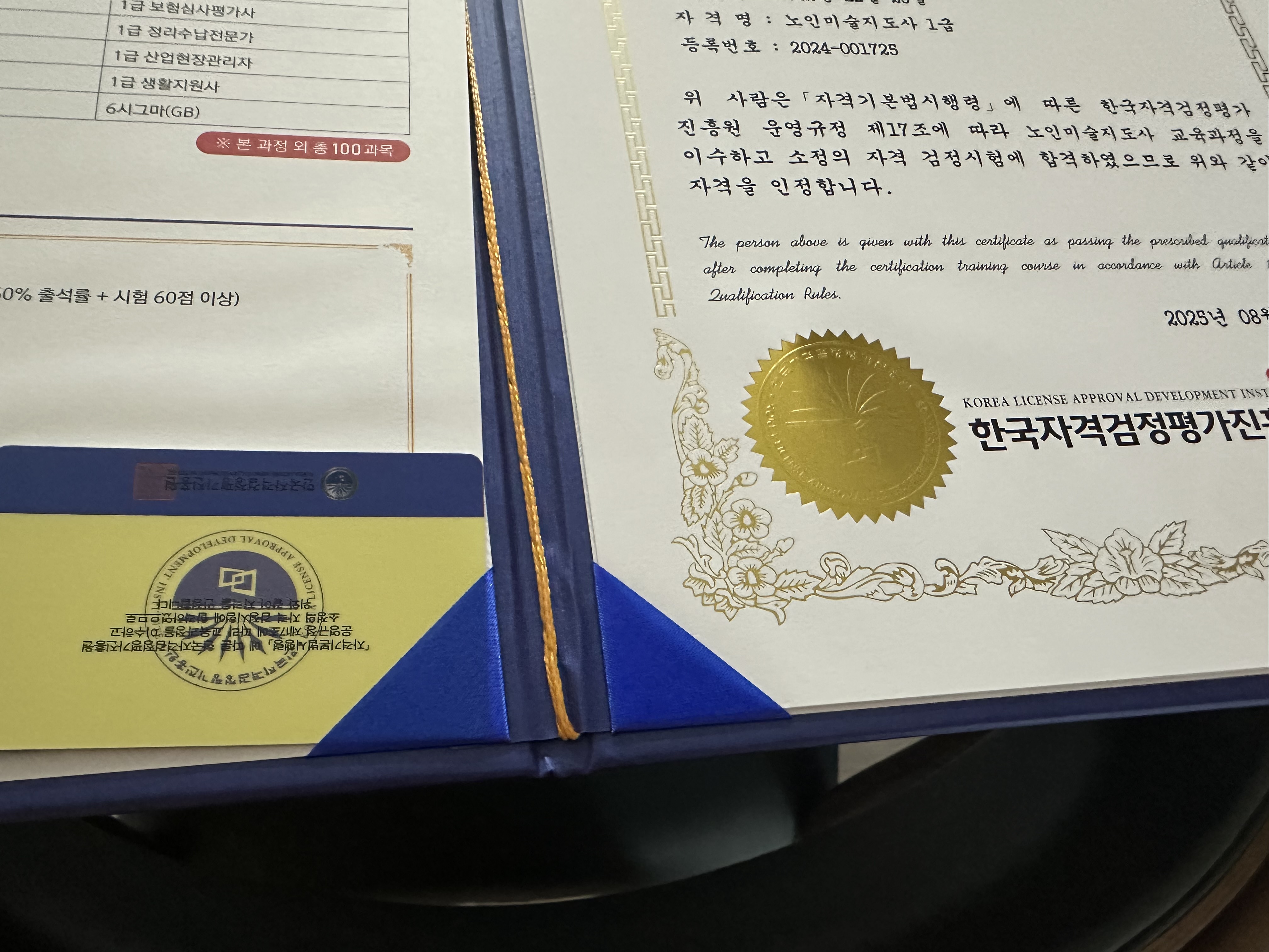 노인미술지도사 병원동행매니저 두개땄어요 퇴직하고 갈곳을 미리 준비하고 있답니다 자격증받고 보니 너무 감동입니다