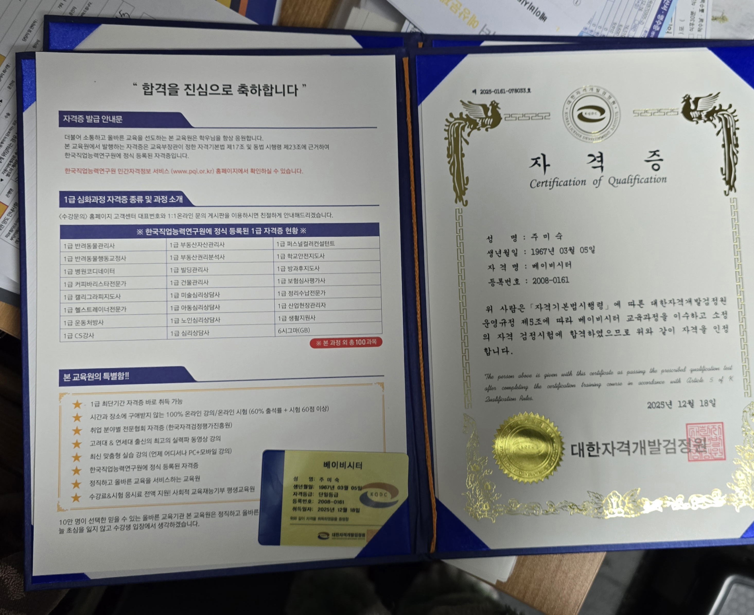 정말 필요했던 자격증이었는데 한국자격증협회을 알게되서 취득하게되었습니다.